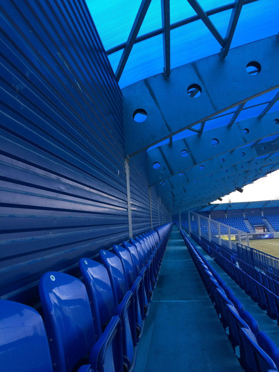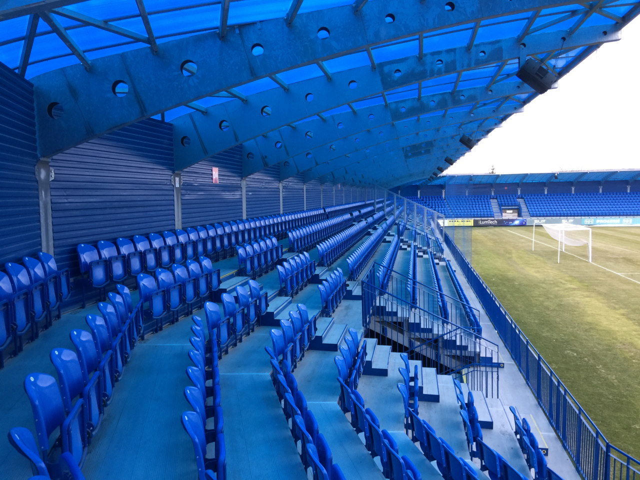 おそらく建設コストを安くするために、バックスタンドやゴール裏スタンドは日本でいう常設仮設であろう、鉄骨造のシンプルな構造。