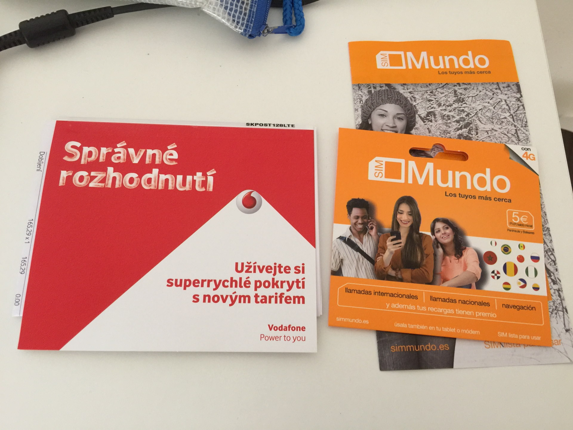 [写真:左:プラハで購入したvodafonのデータ専用SIM(500MB・48時間) 右:バルセロナ国際空港で購入したOrangeのデータ専用SIM(3GB)
