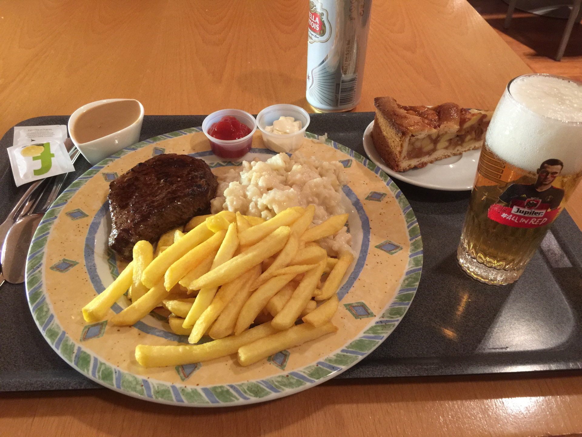 [写真:ヨーロッパ最後の食事はステーキ!胃腸も絶好調。食べられる幸せ