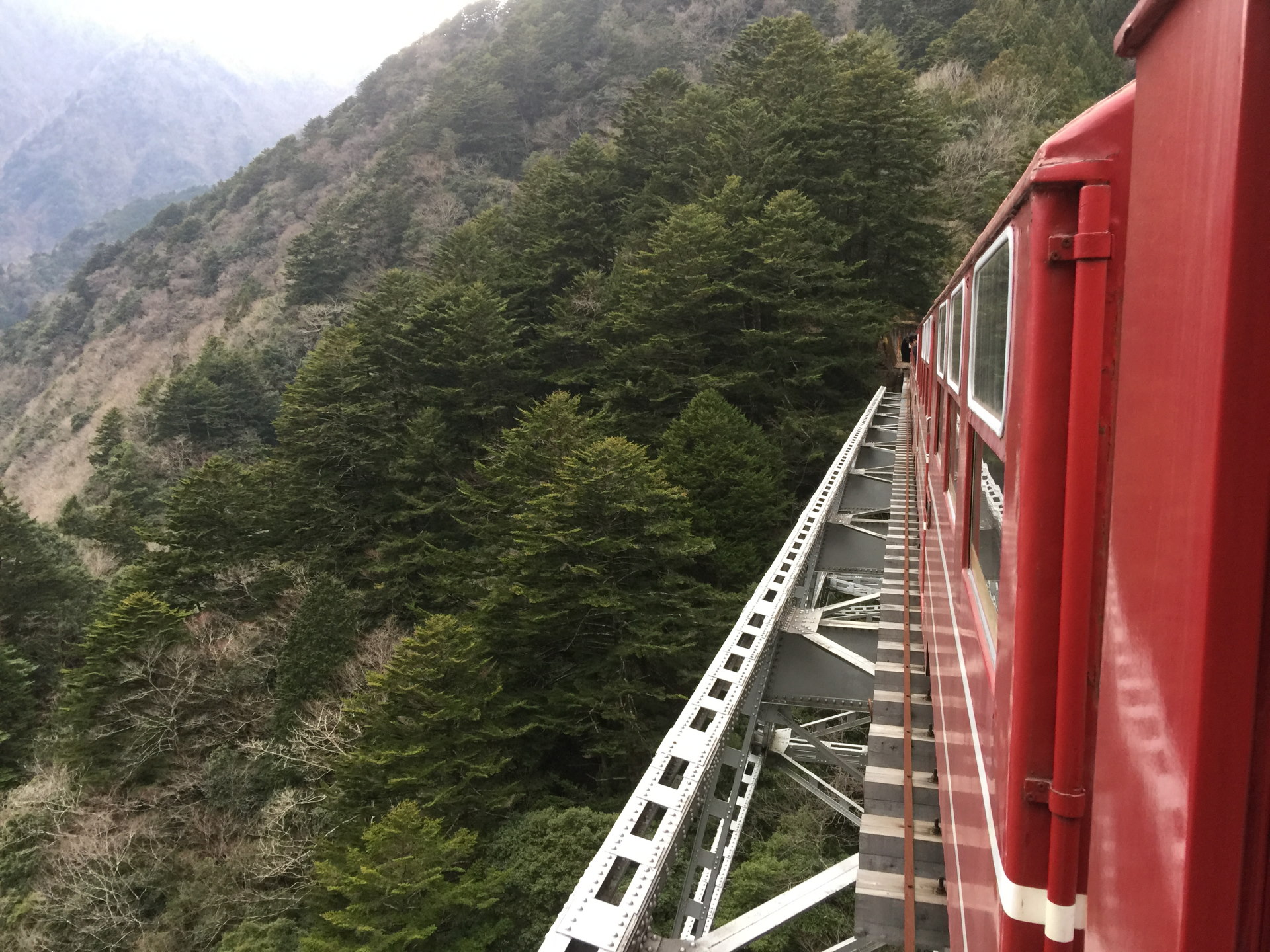 井川線の魅力はなんと言っても、山間を縫うように走っていくため、すばらしい車窓の眺めが楽しめること。