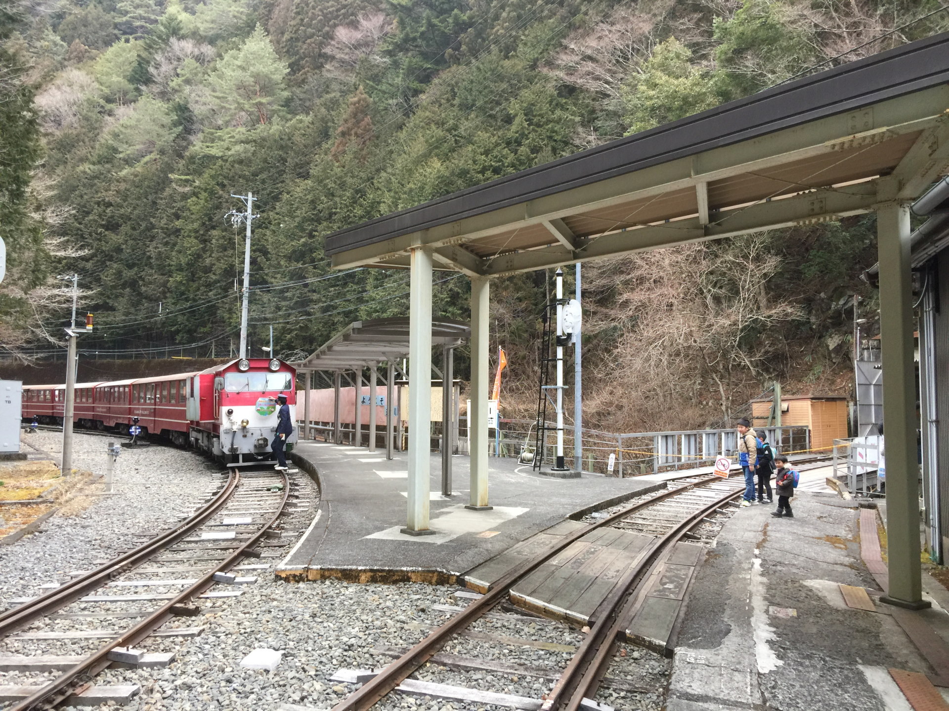 実は数年前の台風で土砂崩れに見舞われ、井川線は途中から不通になっていたのだが、この3月11日に全線復旧したばかり。