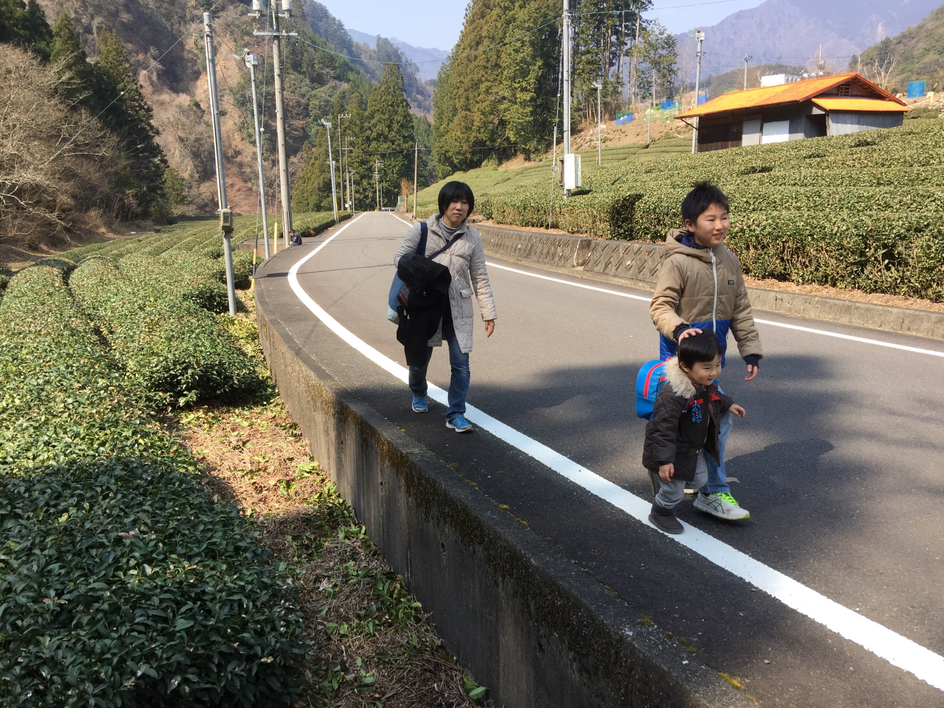 茶畑を見ながら歩いていくが、これ、どっかで見た風景。