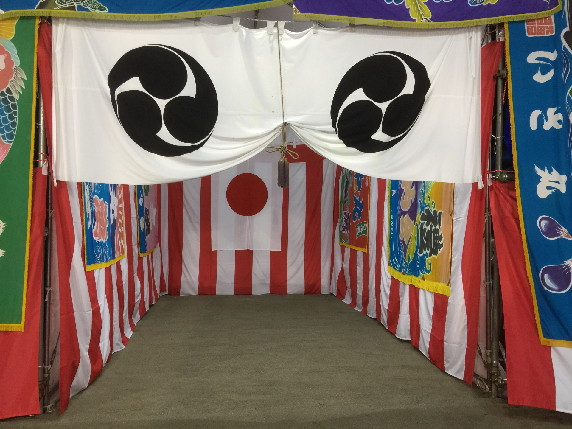 [写真:年番町芝町の人たちによって、御仮屋前に設置された神功皇后の山車(たたき台)