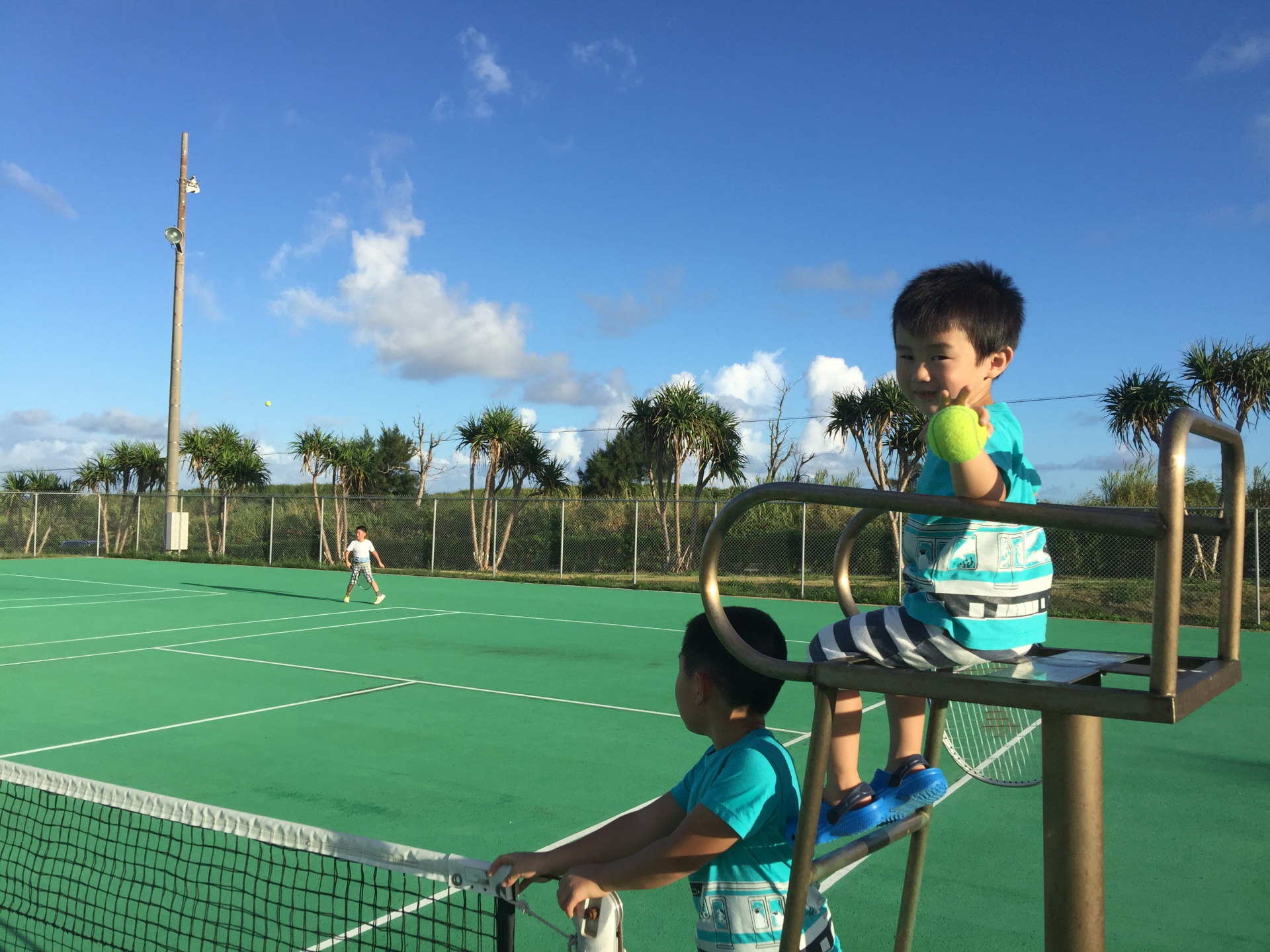 ホテルに帰ると小一時間、家族でテニス。