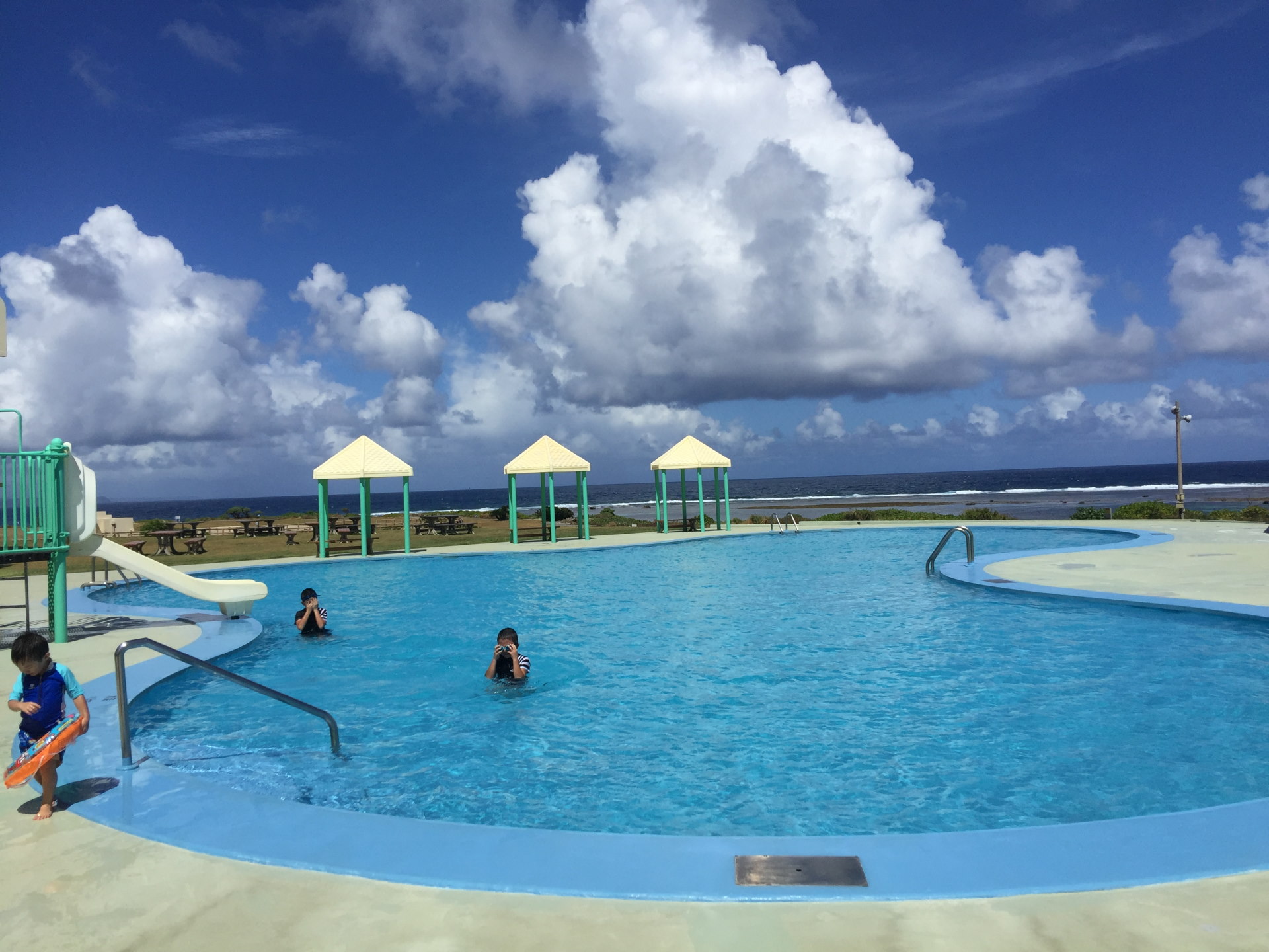海水浴はさすがに疲れ、部屋で一休みした後、午後はホテルのプールで泳ぐ。