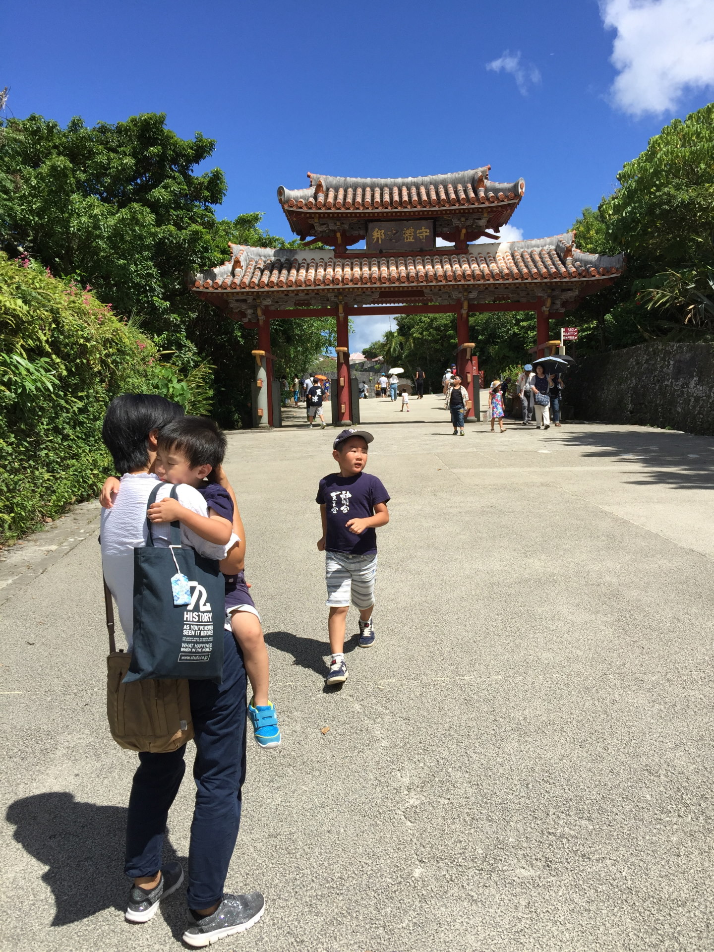 この日も気温は高く……、広い首里城内を歩き巡るのはなかなかの苦行だった。おまけにいぶたんは寝てしまい、抱っこでアップダウン……。いやはや、子育てエクササイズ!