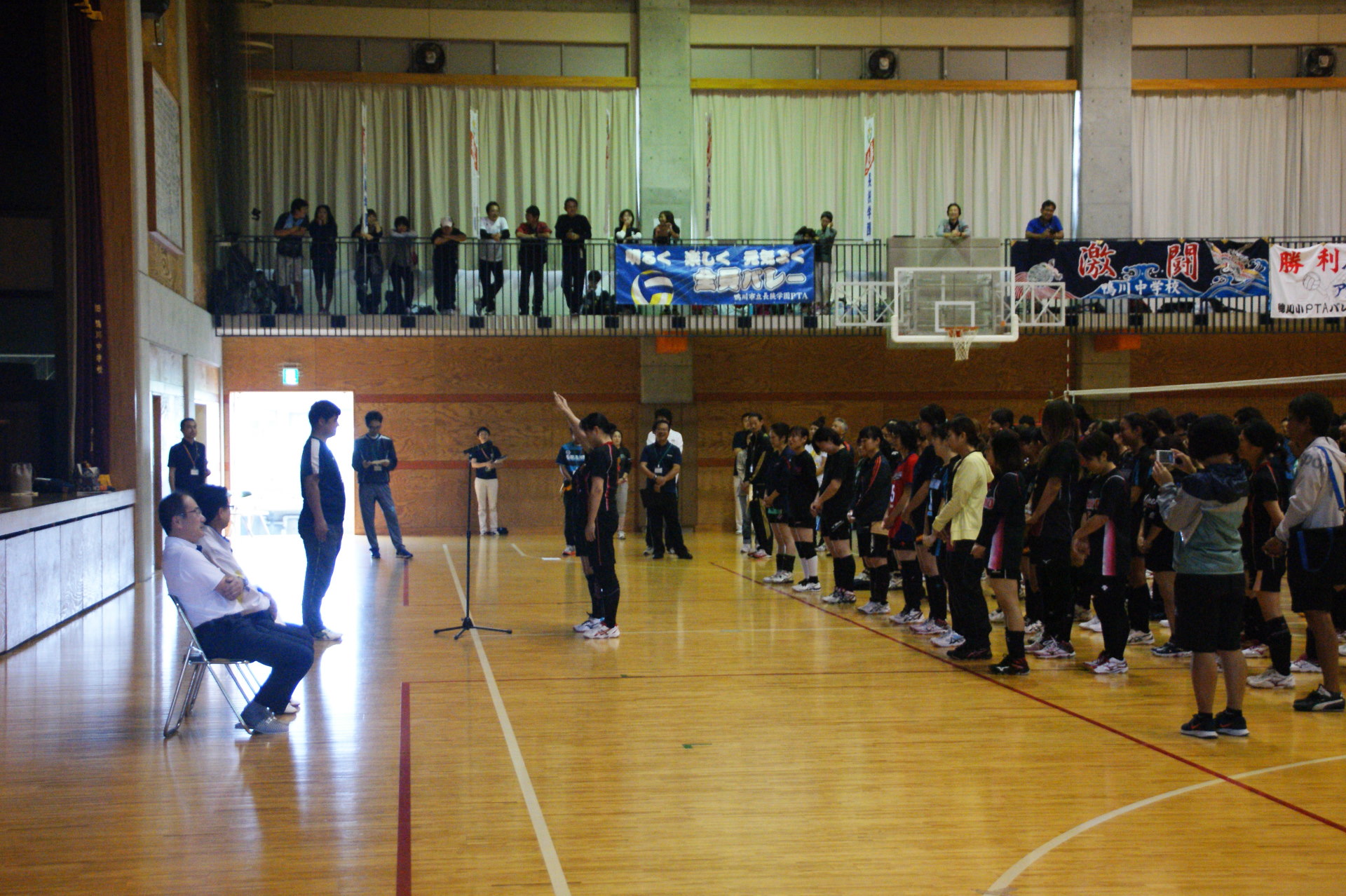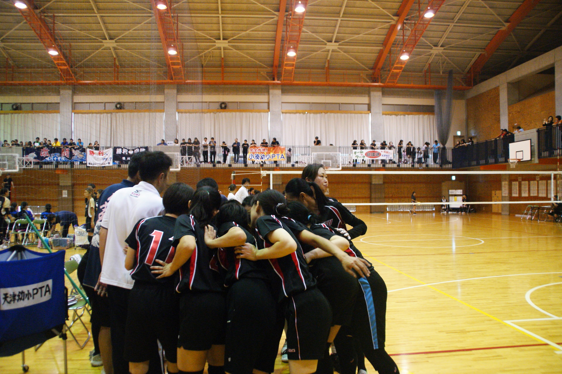 心配された台風18号はノロノロと進みが遅く、PTAバレーボール大会は無事開催することができた。