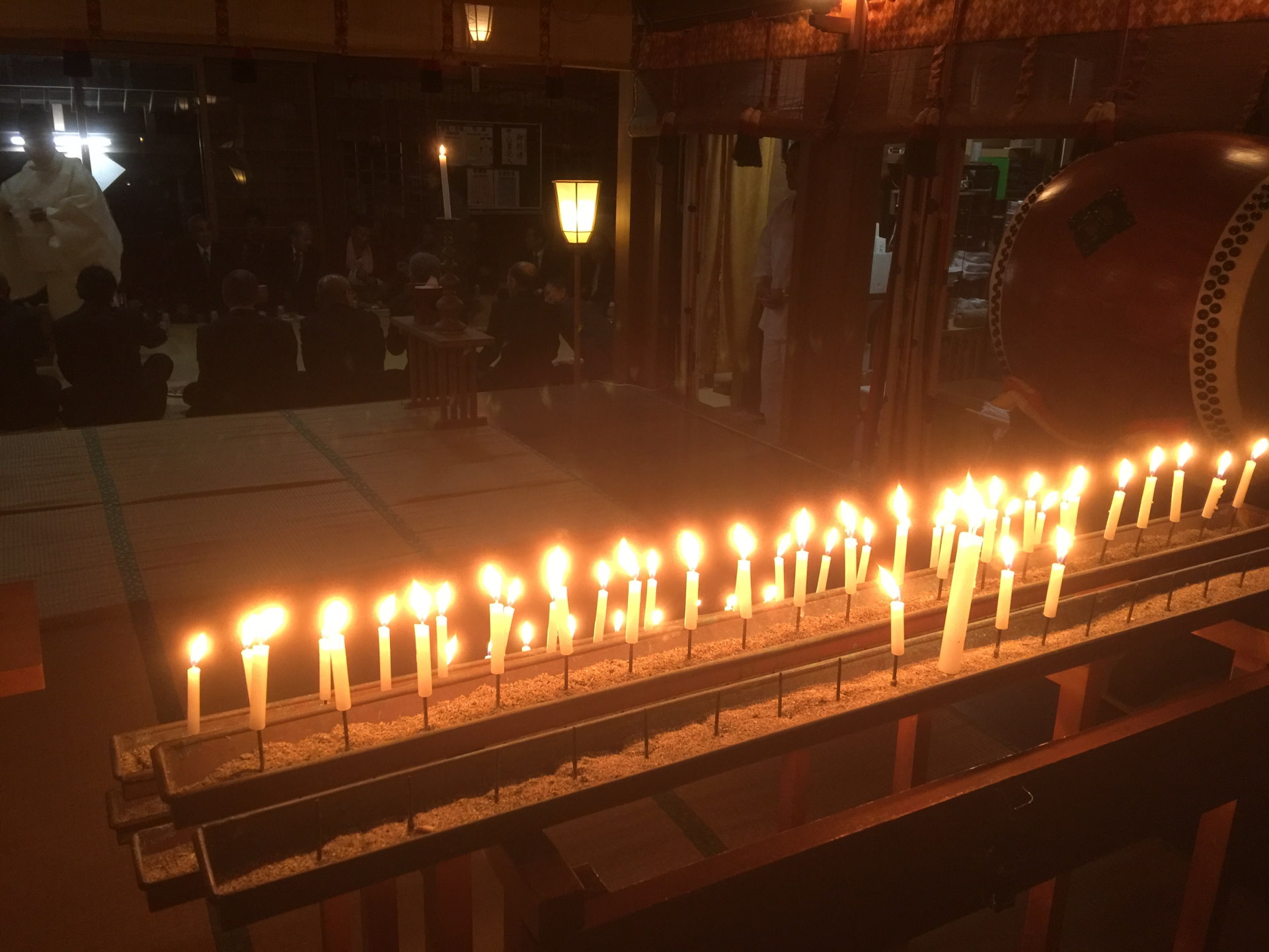夜7時、社殿にて厳粛な中、献燈祭が行われた。