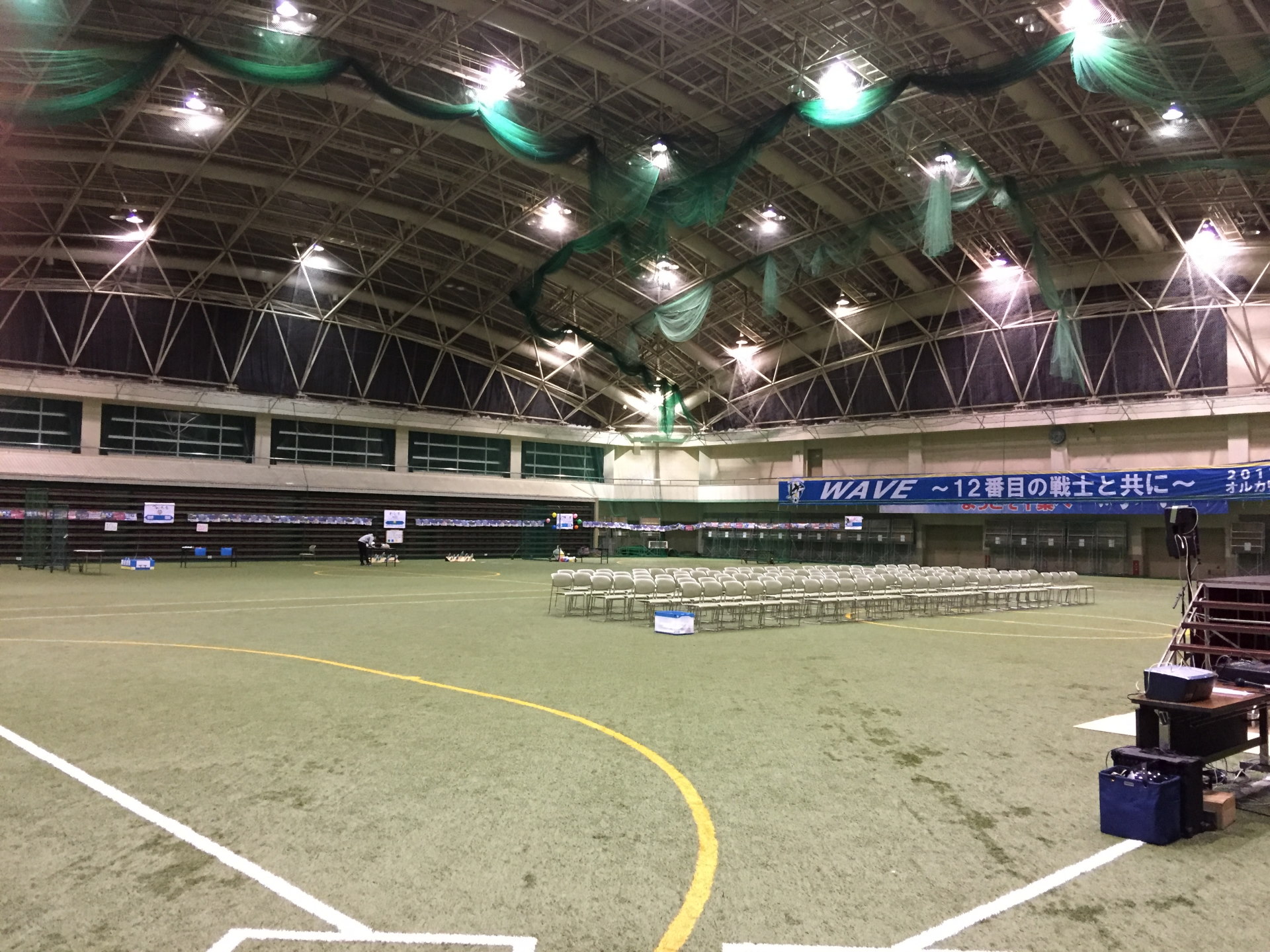 今回は午前中サッカー場での引退記念試合に続き、会場を文化体育館に移してのオルカ横丁のランチタイム、そして、午後のファン参加型交流アトラクション「ORCA Active Line」と、複数の会場を使用することから、音響機器も複数セットを用意する大盤振る舞い(笑)