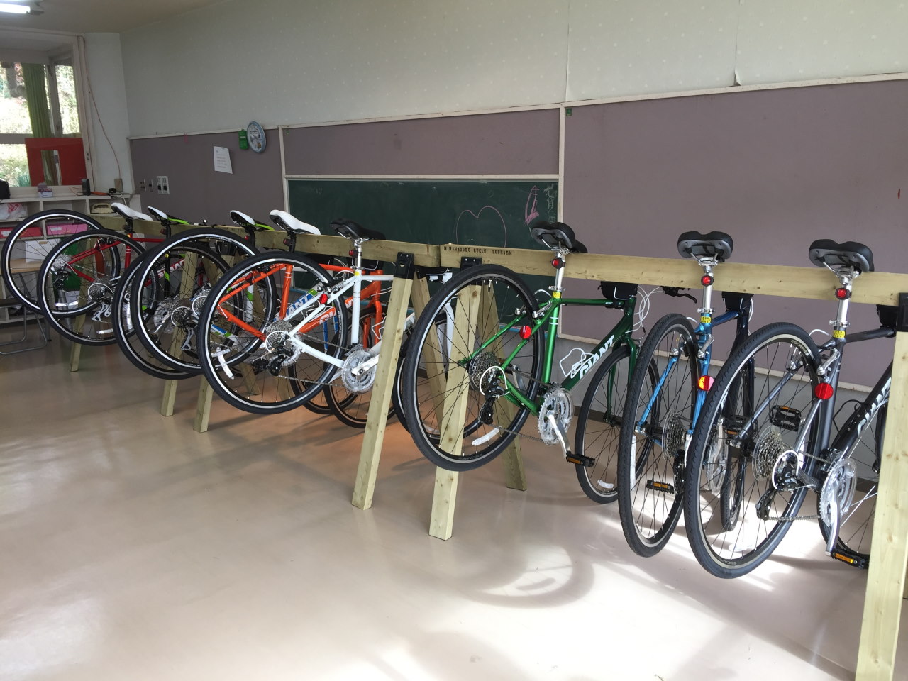 今日は南房総(あわの国)サイクルツーリズム協会が南房総市の旧平群保育所に開設したクラブハウスをお借りして、サイクルラックの作製にチャレンジした。