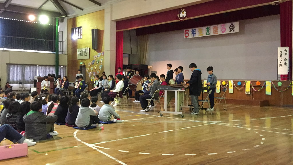 各学年が6年生のために創意工夫にあふれた出し物を披露。