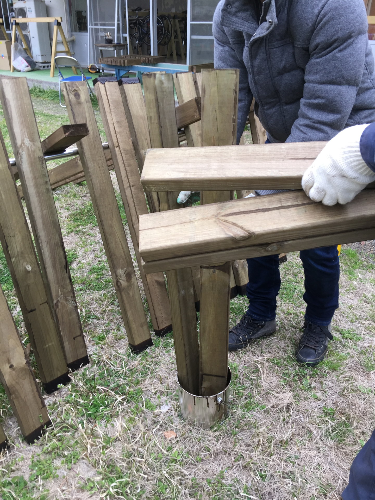 これだけの人数がいるとさすがに作業効率が良い。前回制作した時とは比べ物にならない速さでスイスイと制作は進み、午後2時過ぎには20基のラックが概ね完成した。