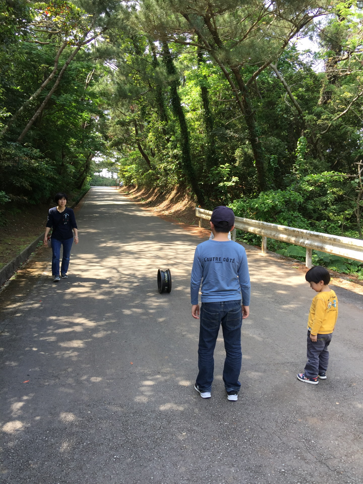[写真:下っているように見えるが…、ホイールは手前方向に転がる