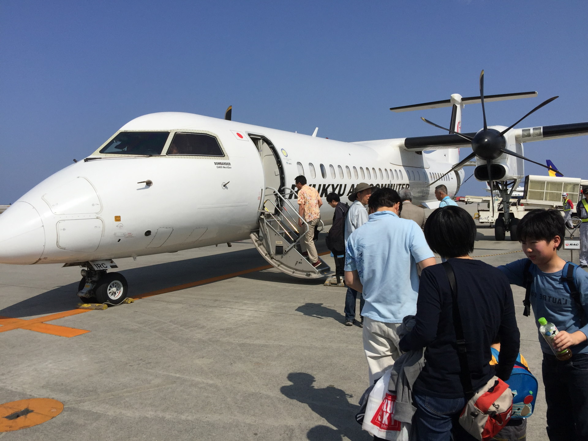 那覇にて1時間のインターバルで、久米島行のプロペラ機に乗り換え。