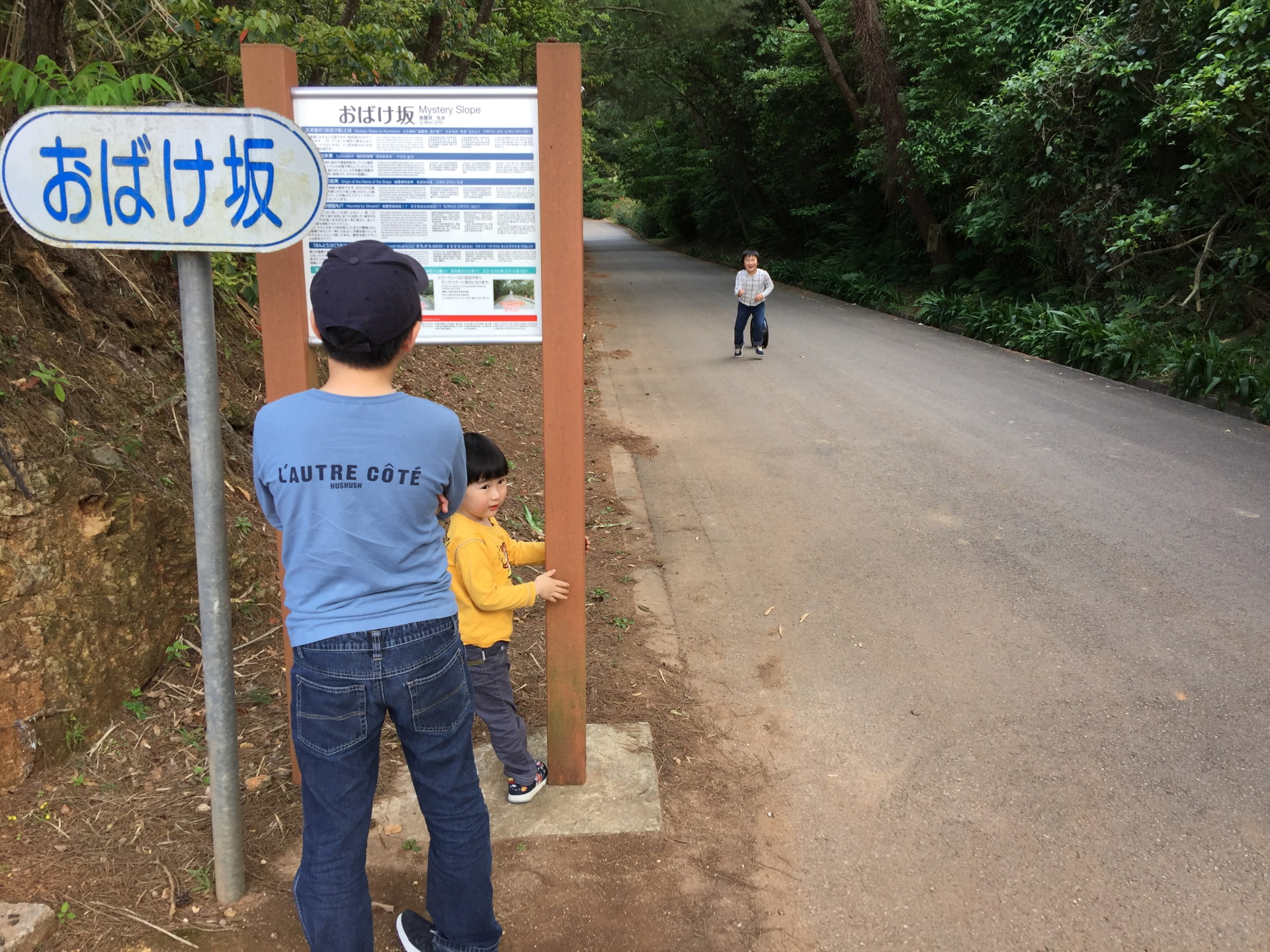 途中、見た目とは逆の方向に傾斜している「おばけ坂」に寄る。