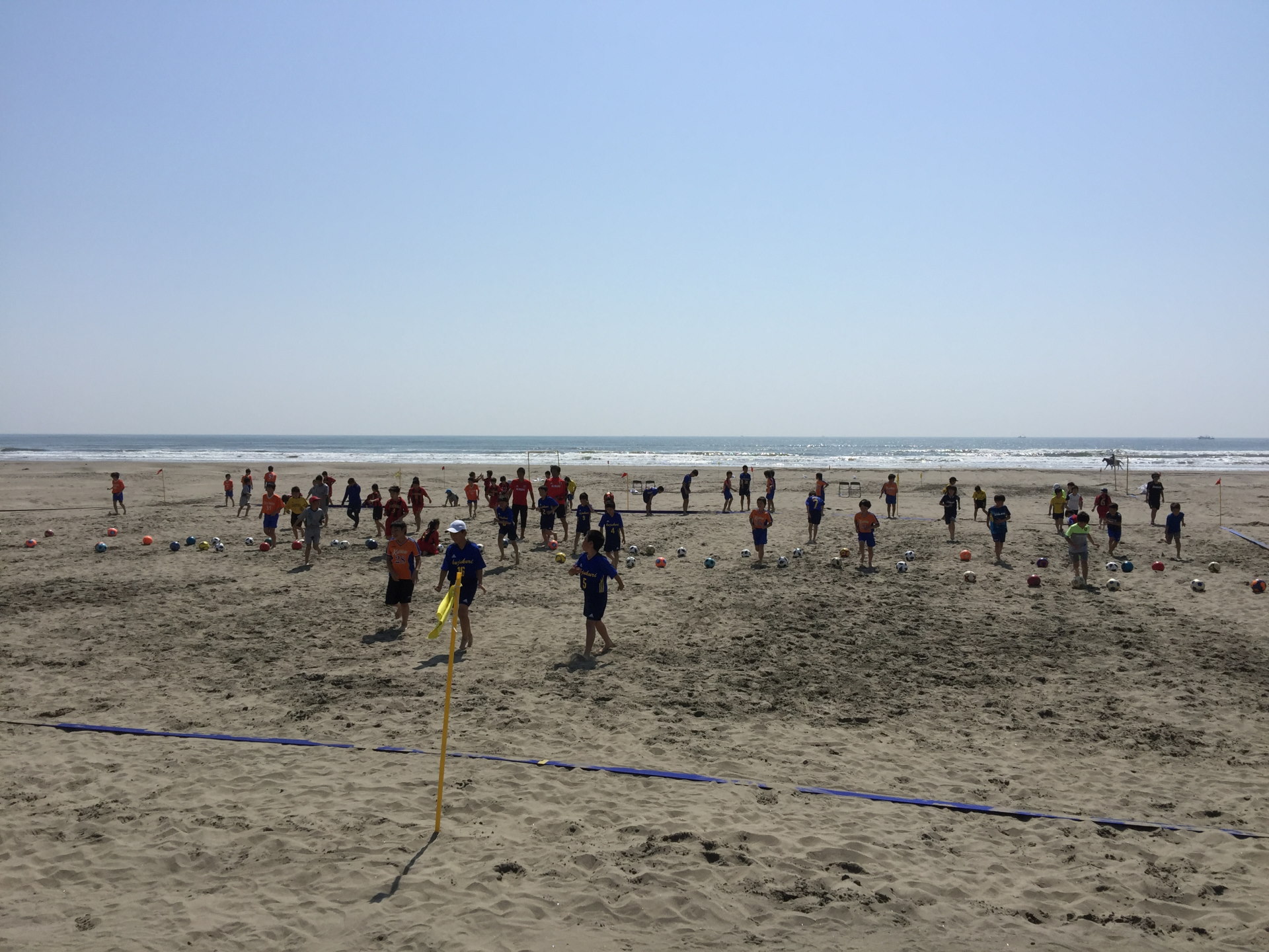 1日目の今日は小学生チームを集めての、ビーチサッカークリニックと午後からは交流試合が行われた。