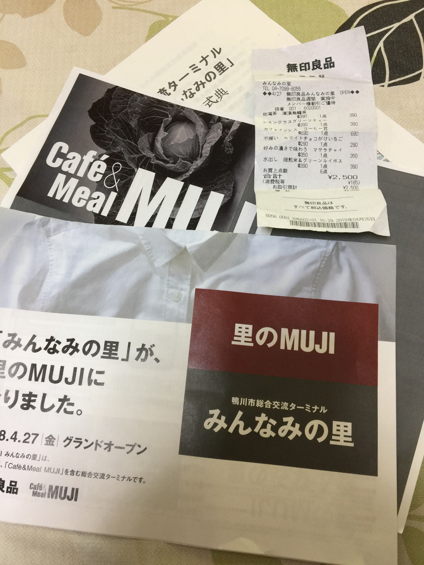 元農産物直売所は無印良品の店舗に生まれ変わり、今日は商品の購入もできた。(私はデカフェコーヒー豆や、ハーブティーなどを購入してみた)