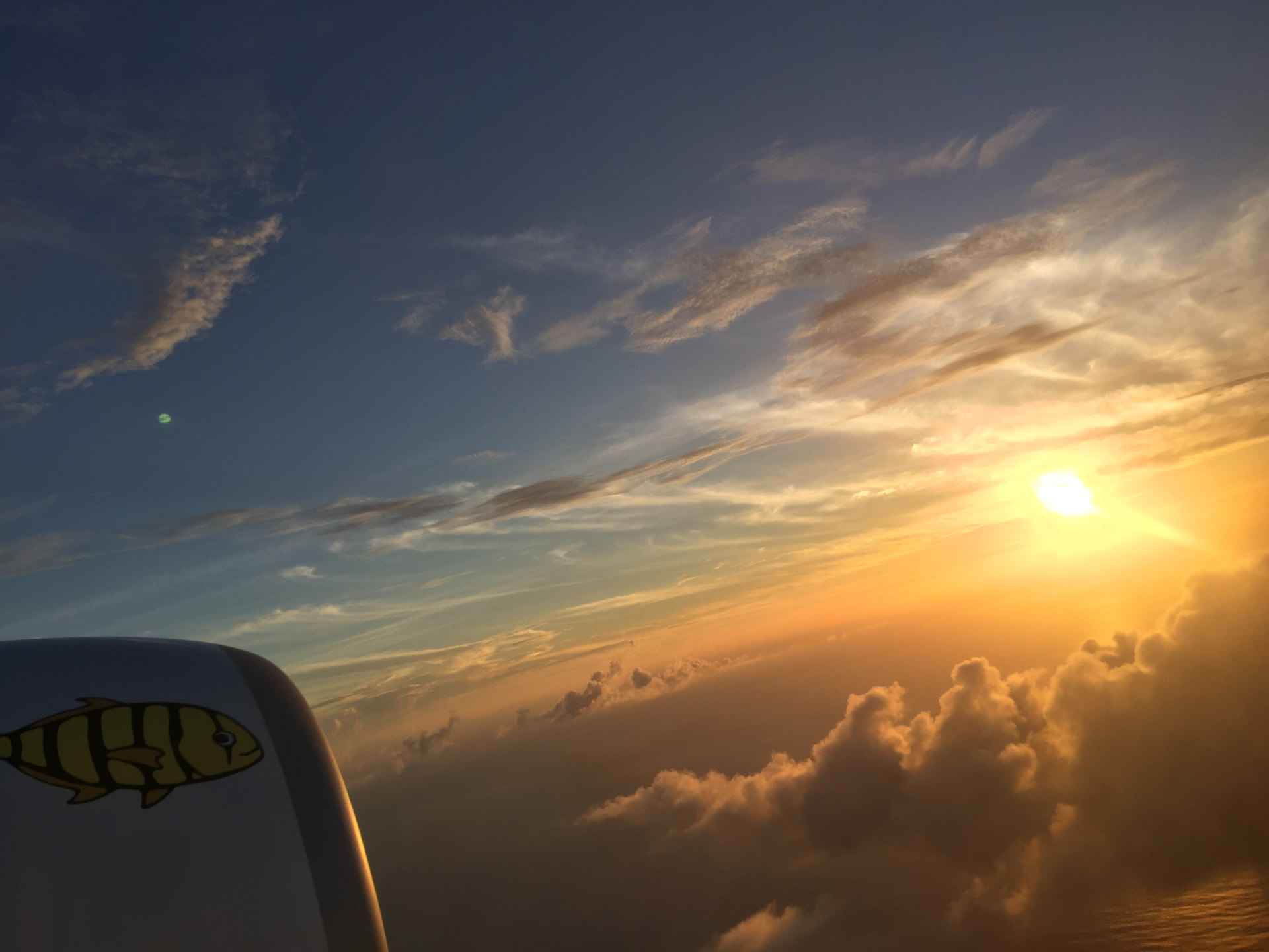 [写真:機内から夕焼けの空を拝めた