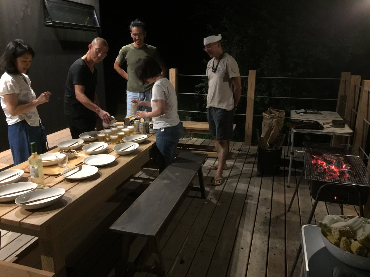 ミーティングの後は林良樹さんの営み古民家「ゆうぎつか」に新たにできたテラスでバーベキュー。星空の下で、夜風に吹かれつつ、お酒も入って、房総の未来について語り合う、すばらしい時間となった。