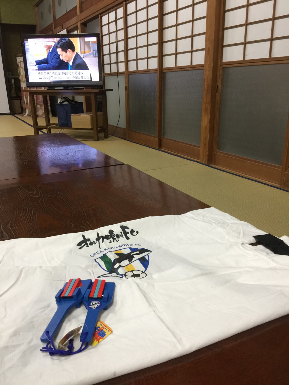 帰宅すると、急遽開催を決定した神社でのパブリックビューイングの会場準備を行う。