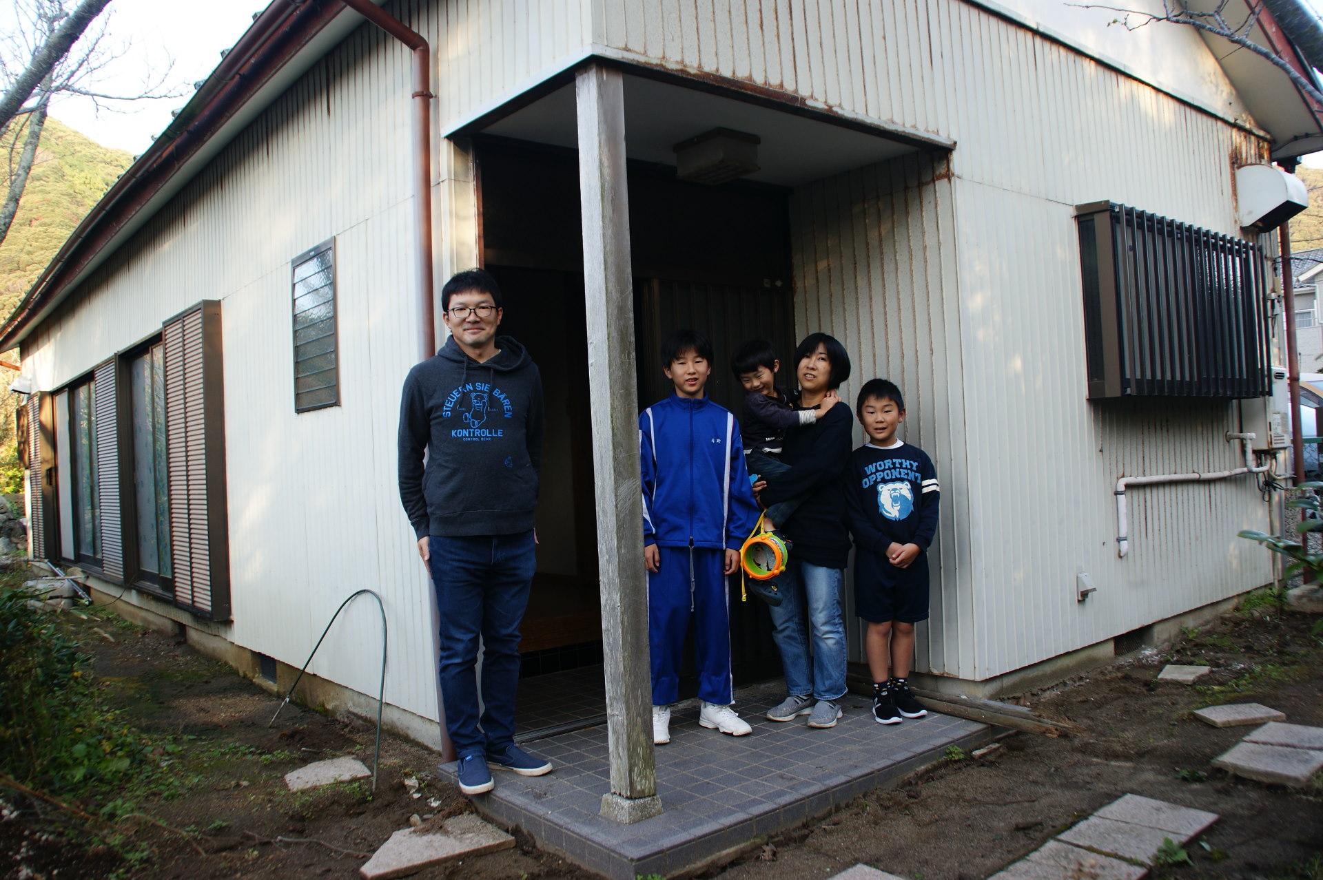 朝、今週末から取り壊しに入る離れ(平屋)の前で家族で記念撮影した。