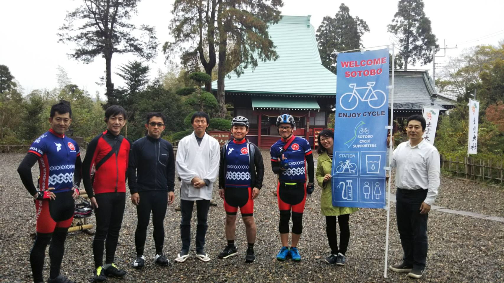 サイクルモードでの情報交換をきっかけにチバテレビのクルーも密着取材に入ってくださり、天津神明宮を午前10時前に出発。