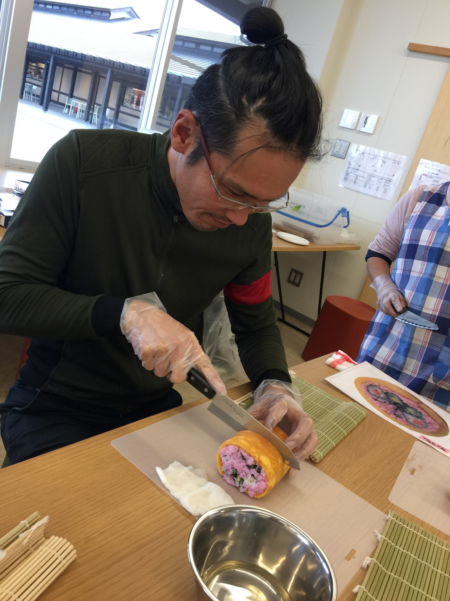 サイクリングの後は開発工房調理室での、花味結さんによる祭り寿司づくり体験。