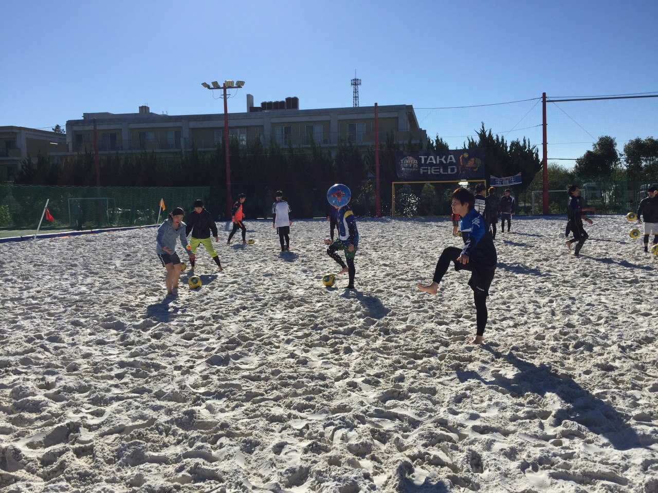今回の練習は個人的にも懇意にさせていただいている東京レキオス所属の原口翔太郎選手のビーチサッカークリニックに参加させていただくかたちで行った。