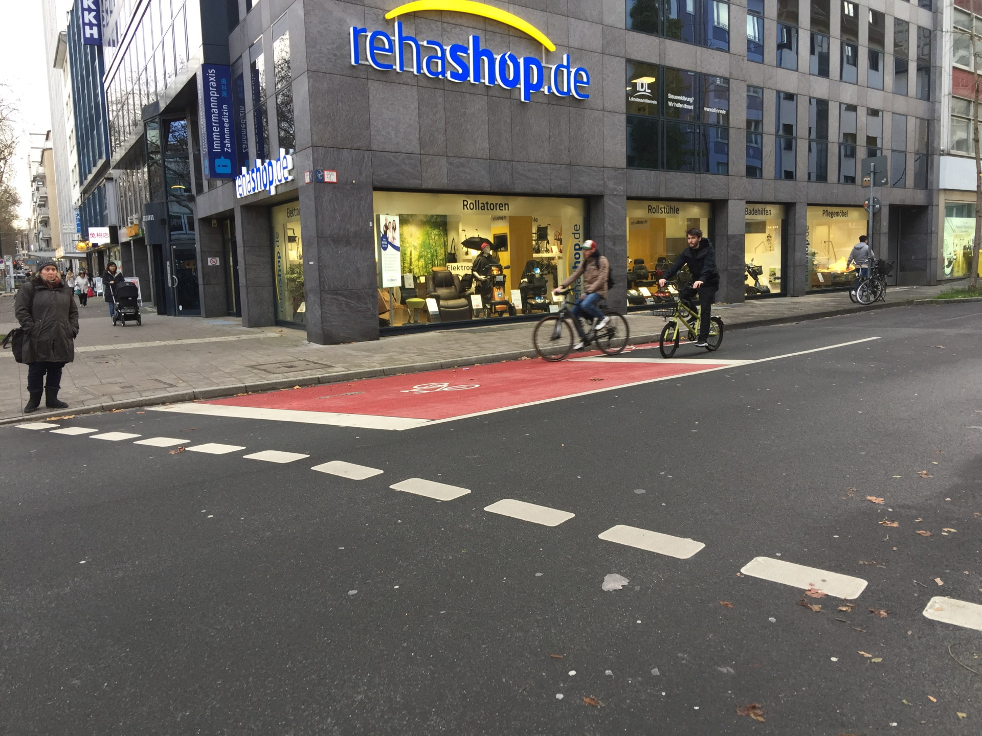 [写真:デュッセルドルフ市街地の自転車レーン