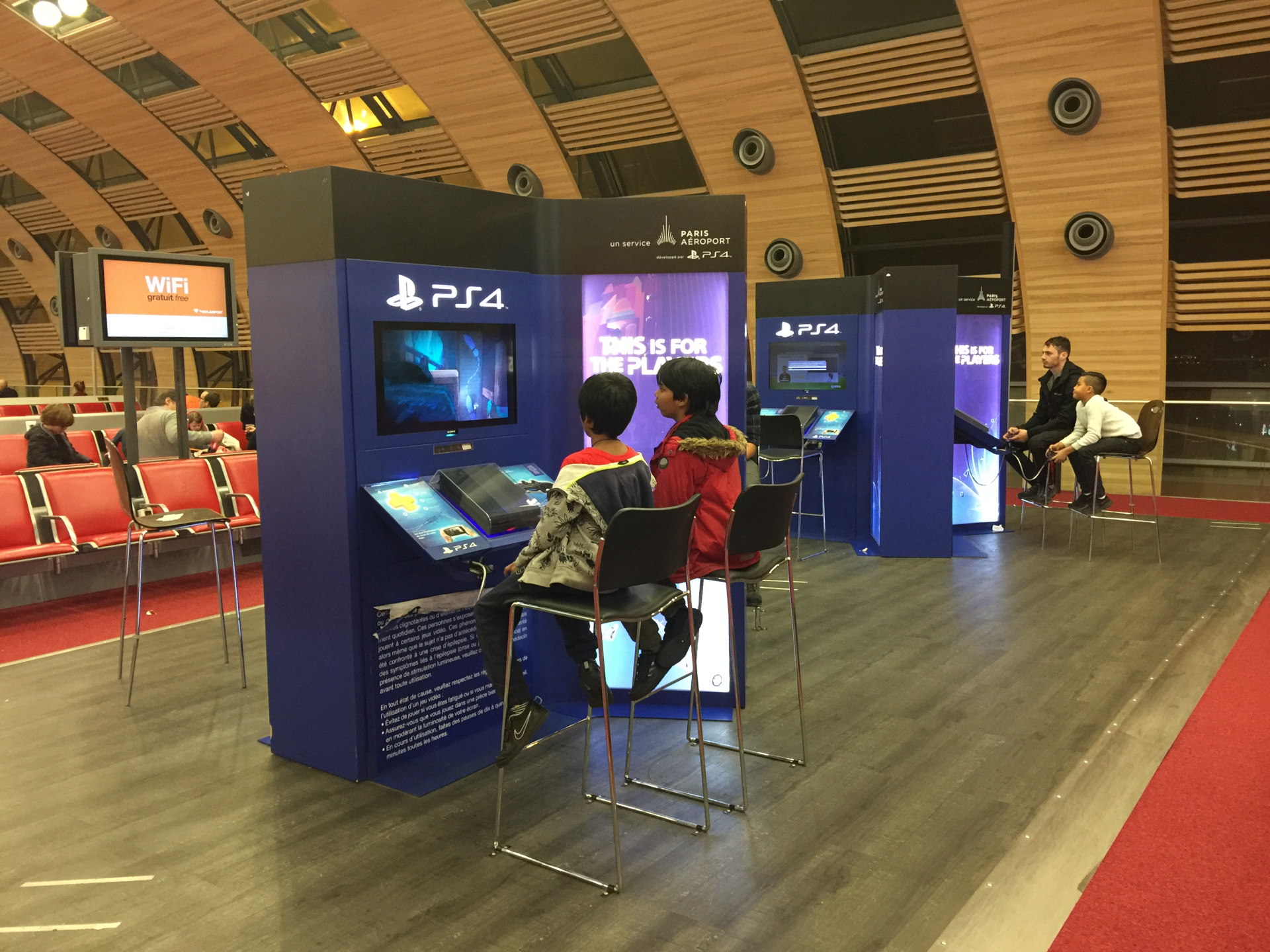 [写真:乗り継ぎのパリ・シャルルドゴール空港ではなんとPS4のコーナーが…。フランス空前のゲームブームか