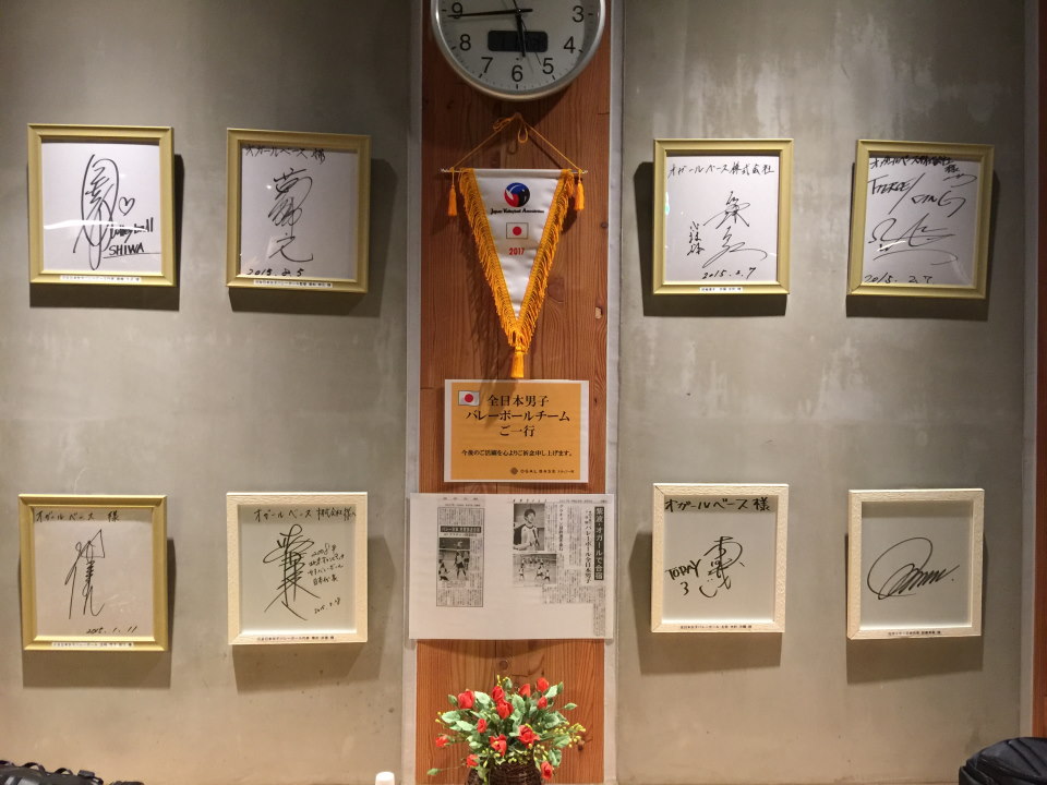 [写真:オガール紫波のロビーに飾られたサイン。バレーボール合宿のメッカになっている