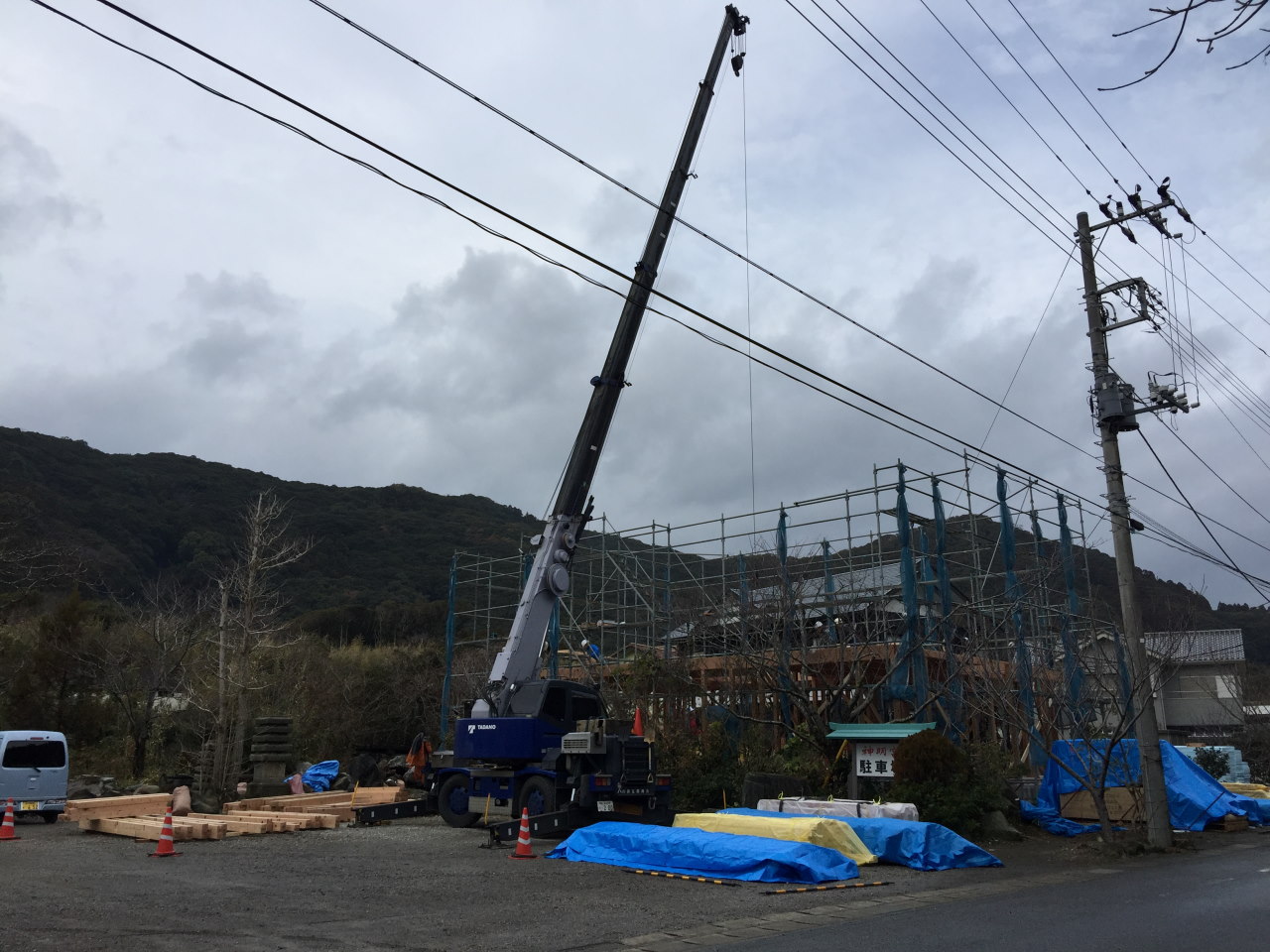 職人さんたちによってあっという間に木組みが立ち上がっていく。