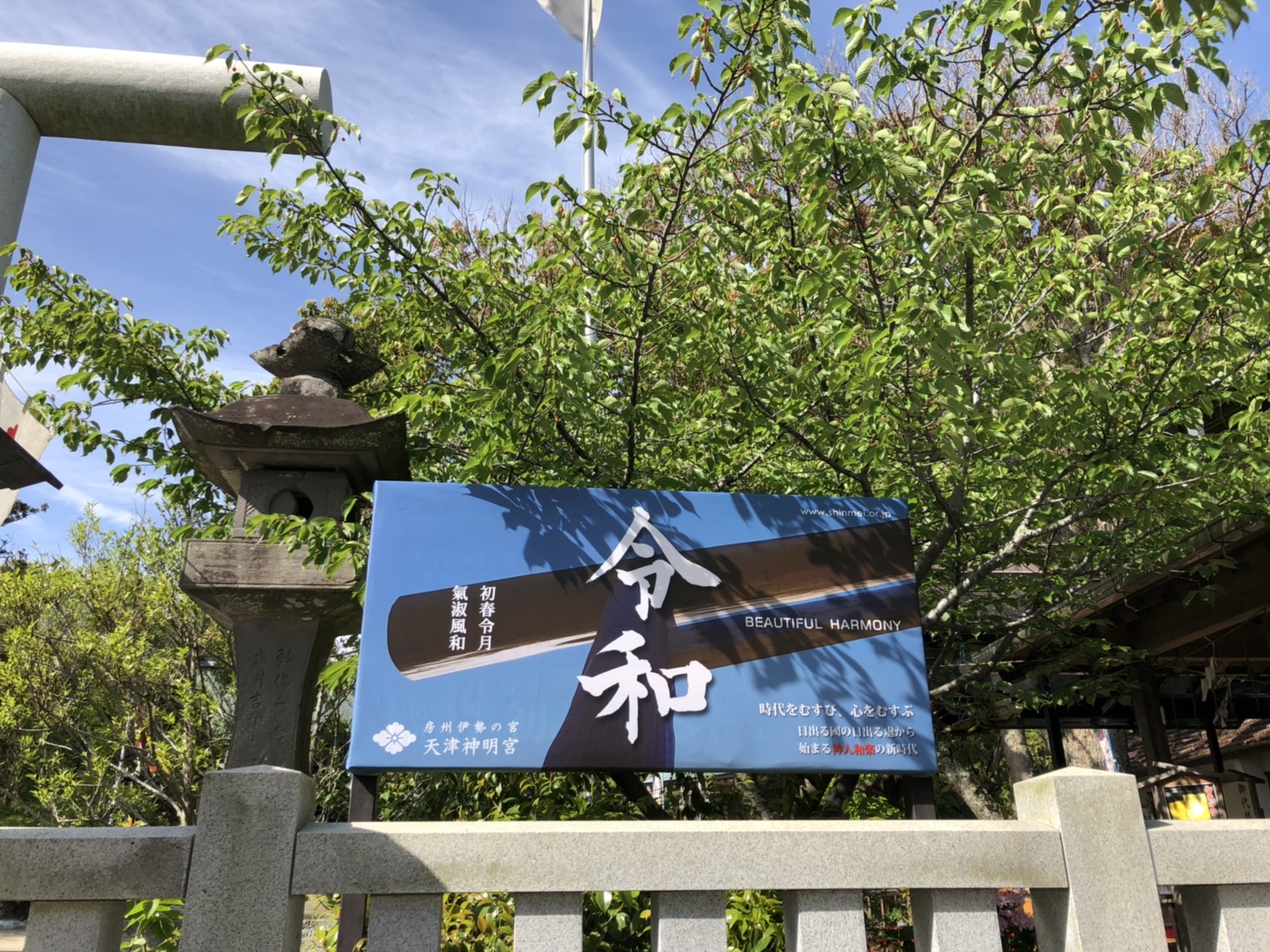 [写真:境内入口看板は「令和」仕様に