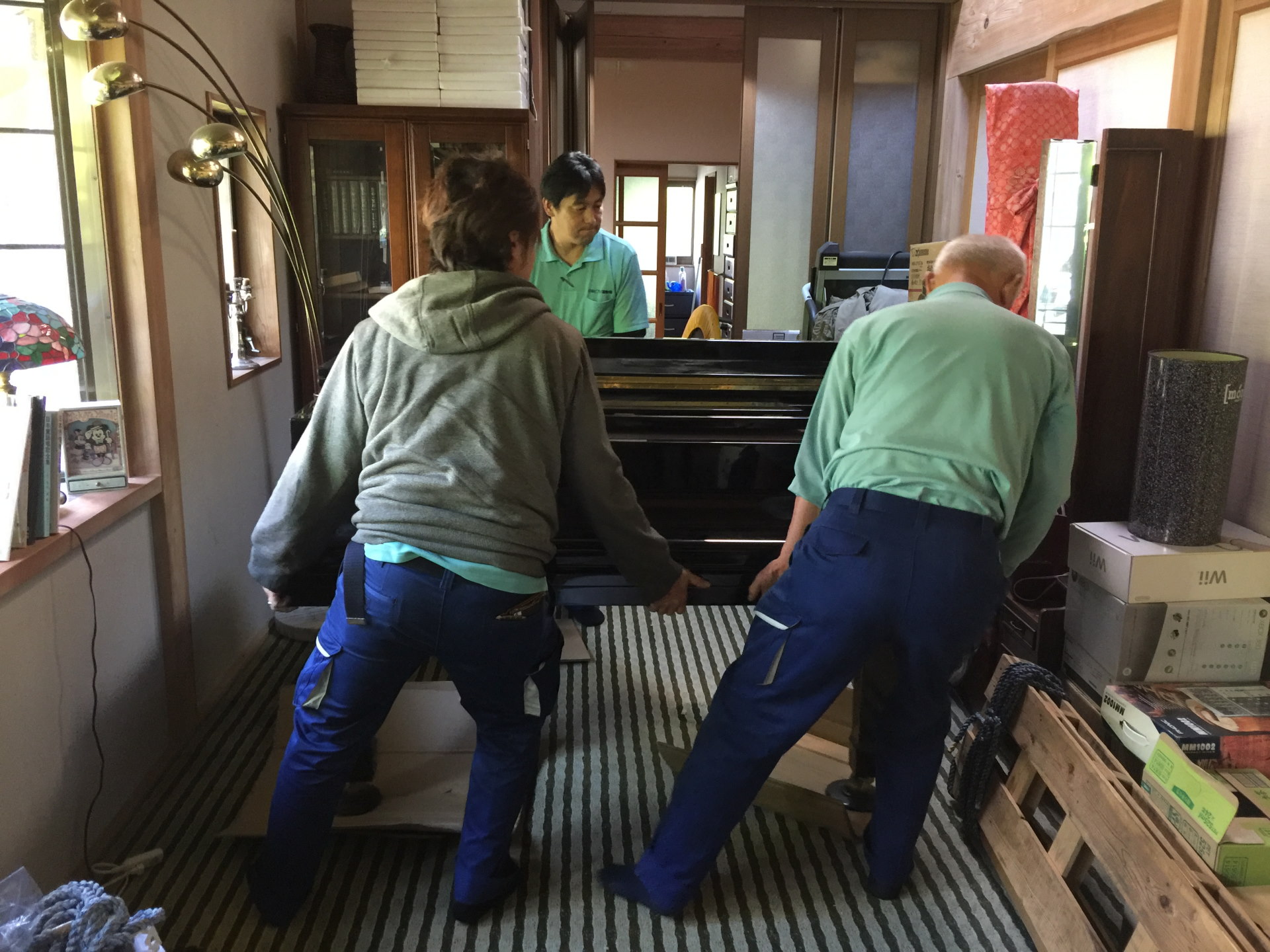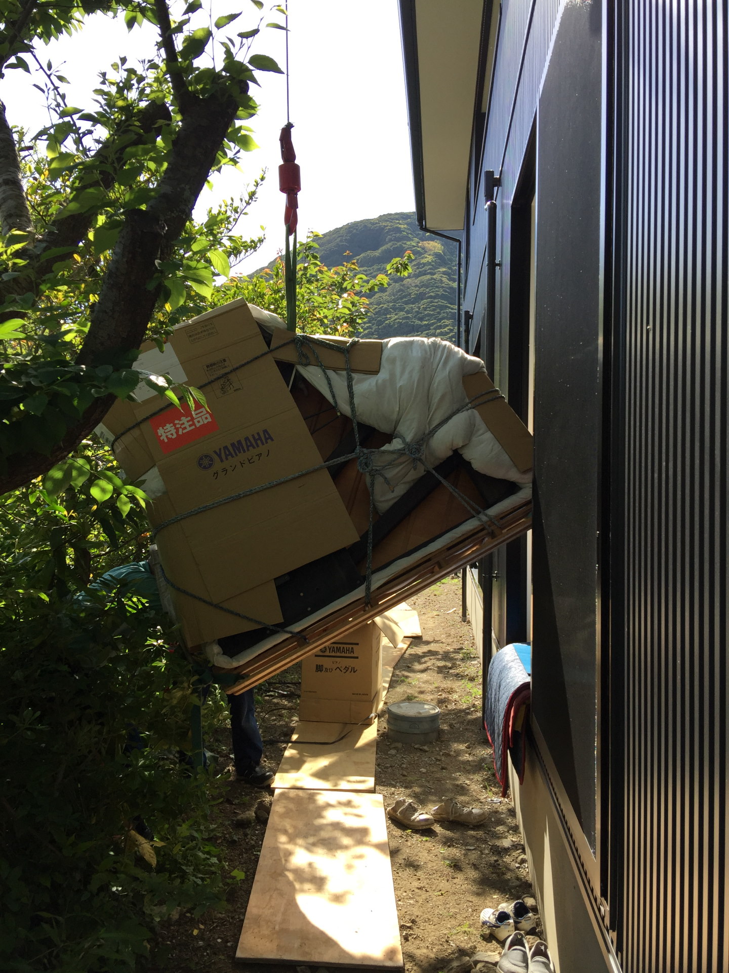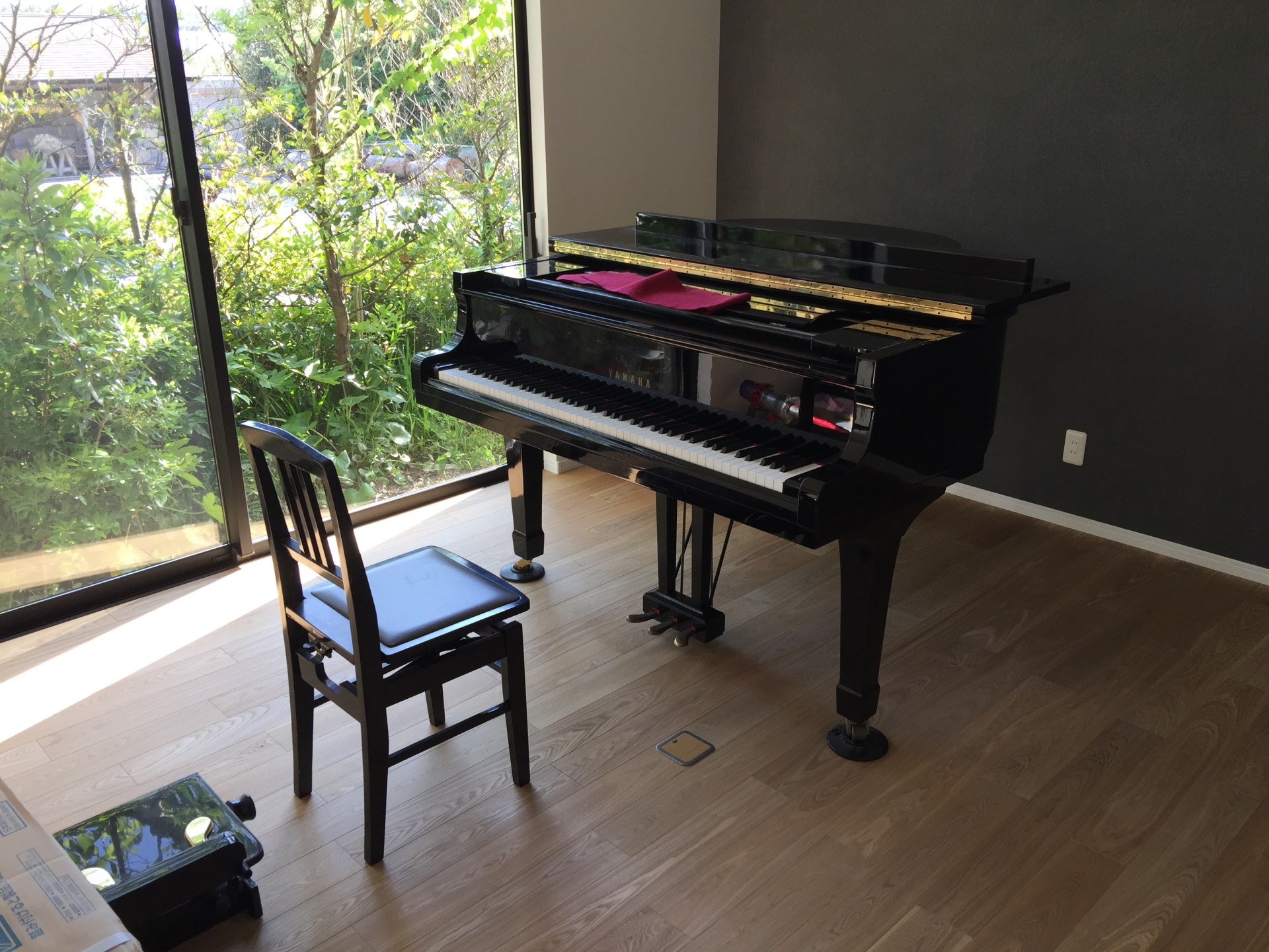 1時間ほどで母屋から新居のピアノ室にグランドピアノは移動され、設置が完了した。