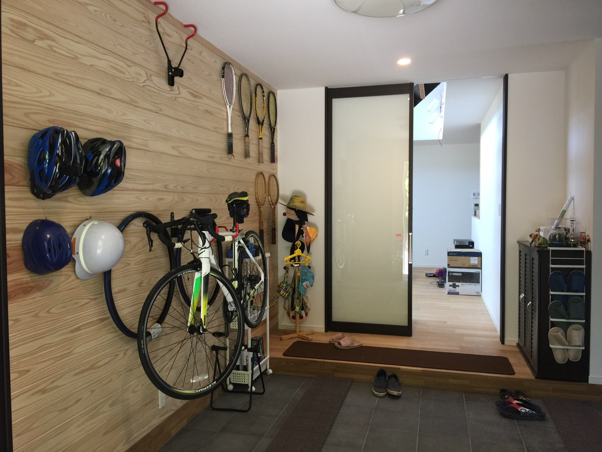 このところ、夜な夜な新居の整理をしていて少々寝不足気味であるが、昨夜は土間のエントランスを整理整頓し、自転車男のロマンの空間を完成させた。笑