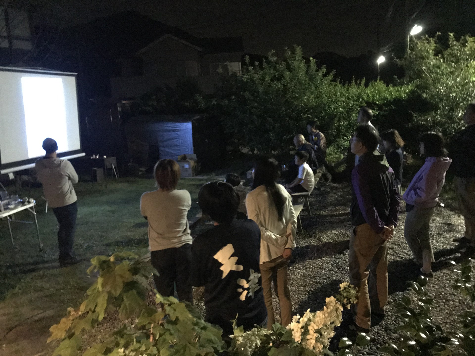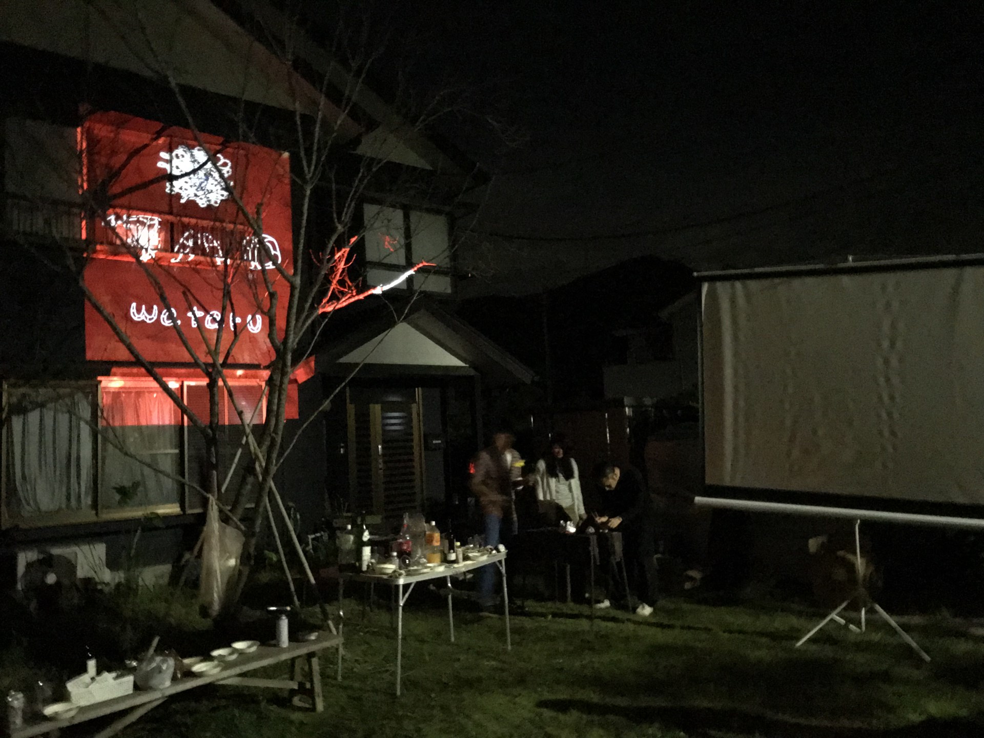 ここで、バーベキューに最初から参加していたいぶたんが覚醒して、なんと自分でプロジェクターを持ち、周辺のいろいろな対象物に投影するという映像技師さながらのパフォーマンス。