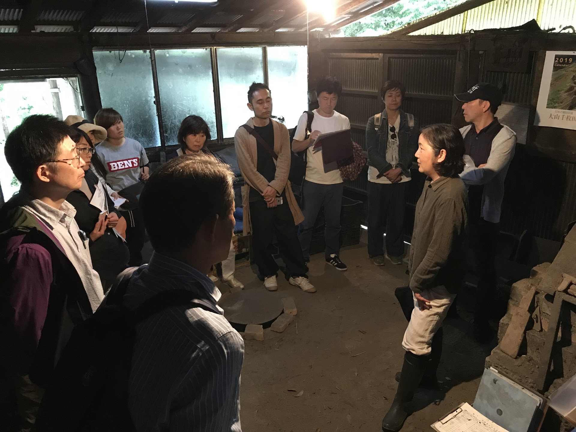 下郷さんのガイドにより、釜沼集落における棚田トラストの取組みや炭焼き小屋を1時間ほどにわたって案内いただく。早苗たなびく棚田に山々の新緑、棚田のエネルギーが満ち溢れていた。