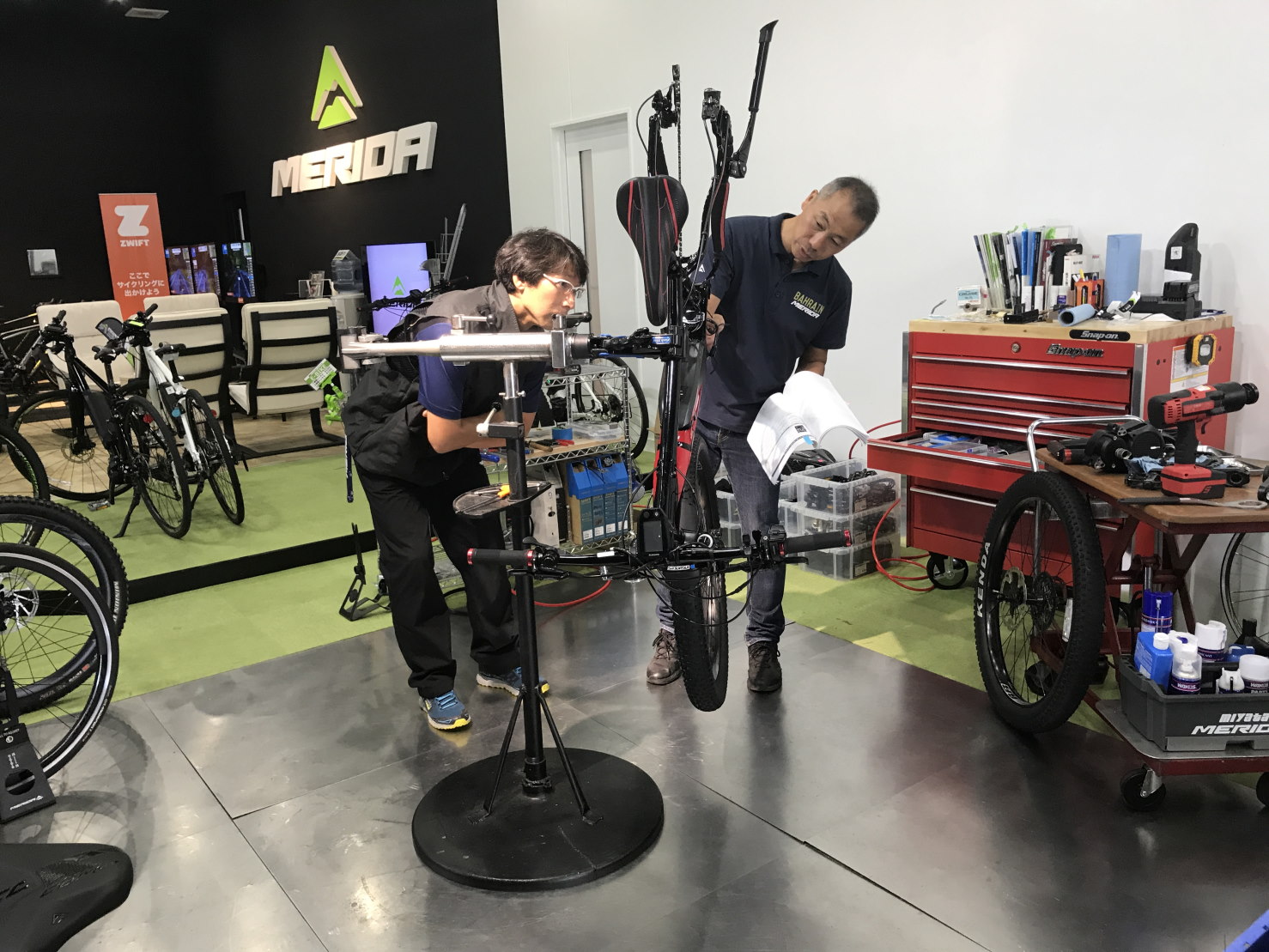 ここにはミヤタ・メリダブランドの全車種が展示され、ただの展示ではなくほぼ全てをレンタルして乗ることができるのだ。