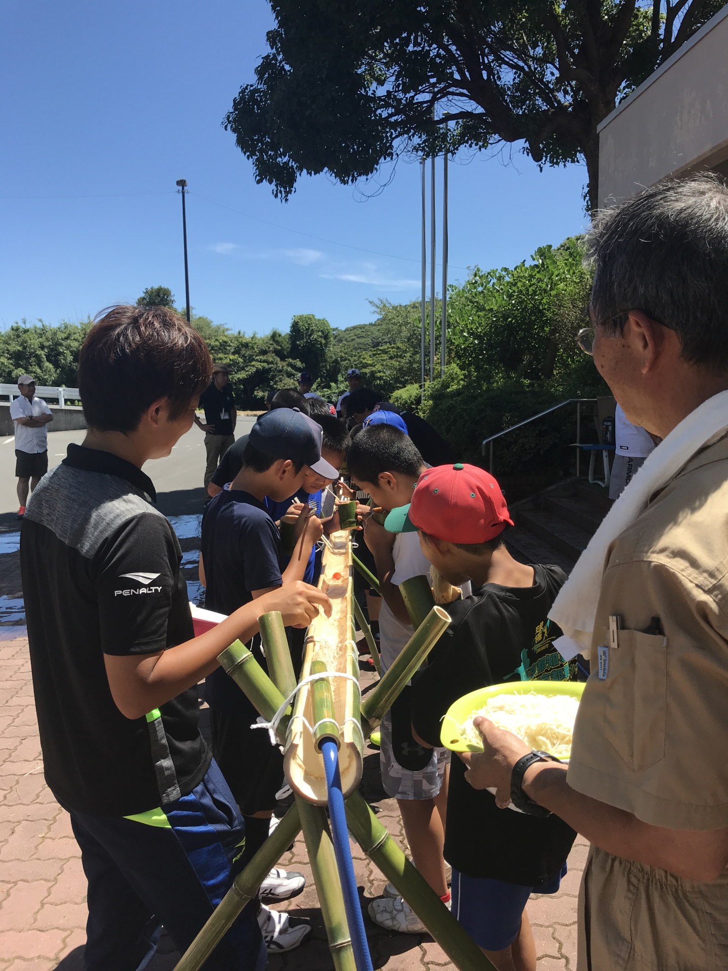 そして、見事に完成し、流しそうめん大会。自分でつくった道具で食べる流しそうめんは格別の味だっただろう。実際、私もいただいたが、ゆで方もバッチリで冷たく、猛暑にはピッタリのランチだった。