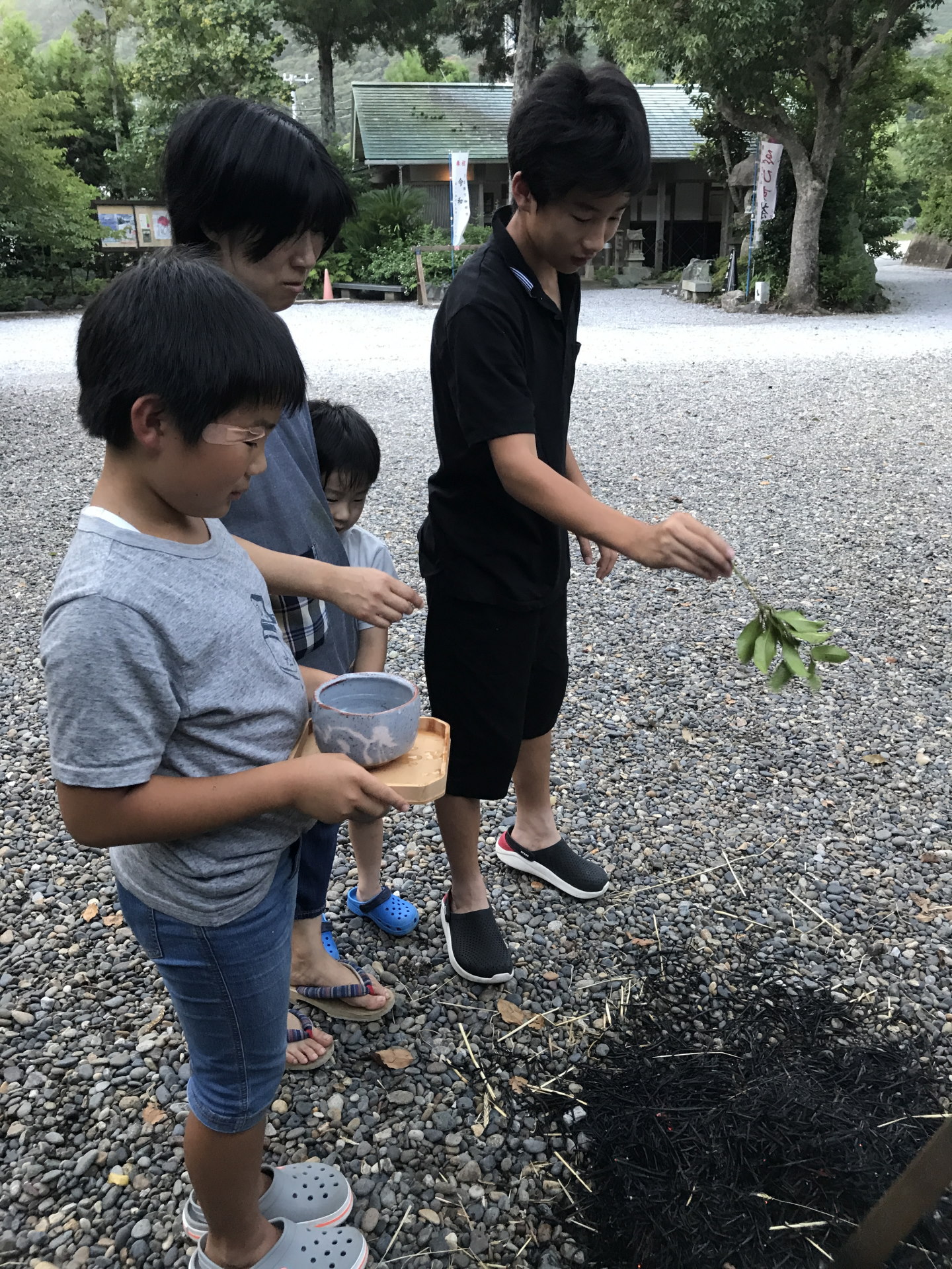 夕方、家族で送り火。ご先祖さまたちを家族みんなでお送りする。