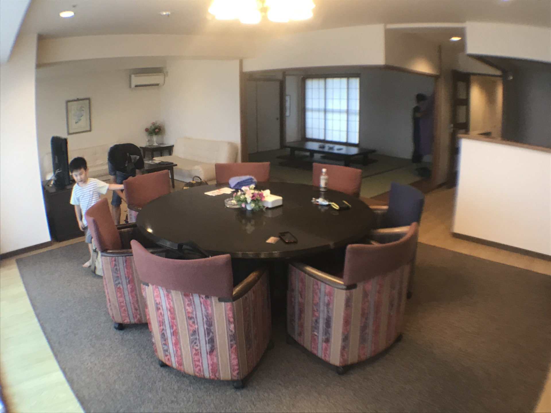 1泊2食で大人1人1万円を切るという破格値ではあるが、元々マンション物件をホテルに改装したのだろうか、キッチンもあり、広いバス、トイレもあり、和室、リビング、ダイニング、別に洋室と、広さとしてはスイートルームクラスだった。