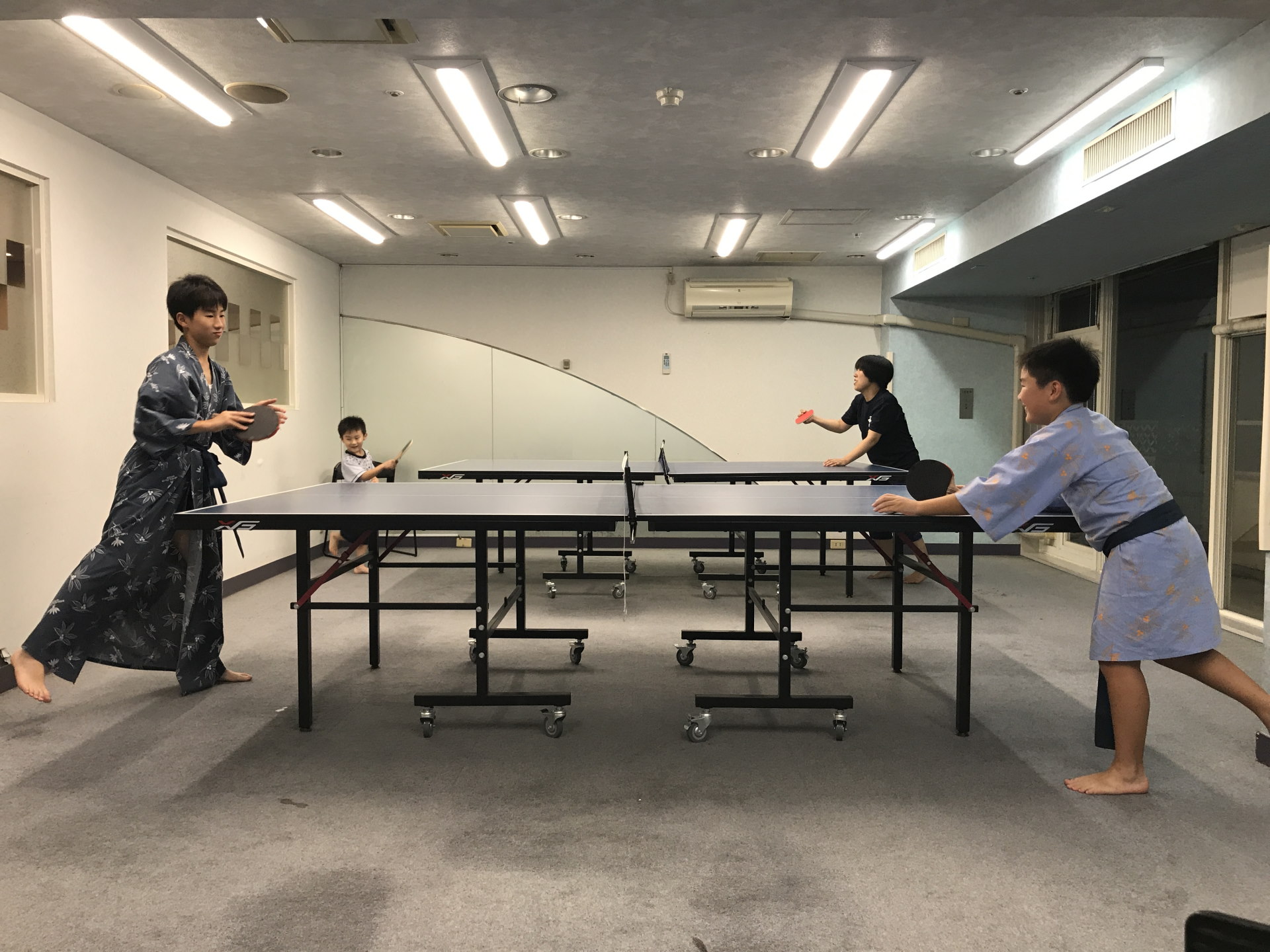 夕食後、部屋で休むと、続いては子どもたちのリクエストで卓球。