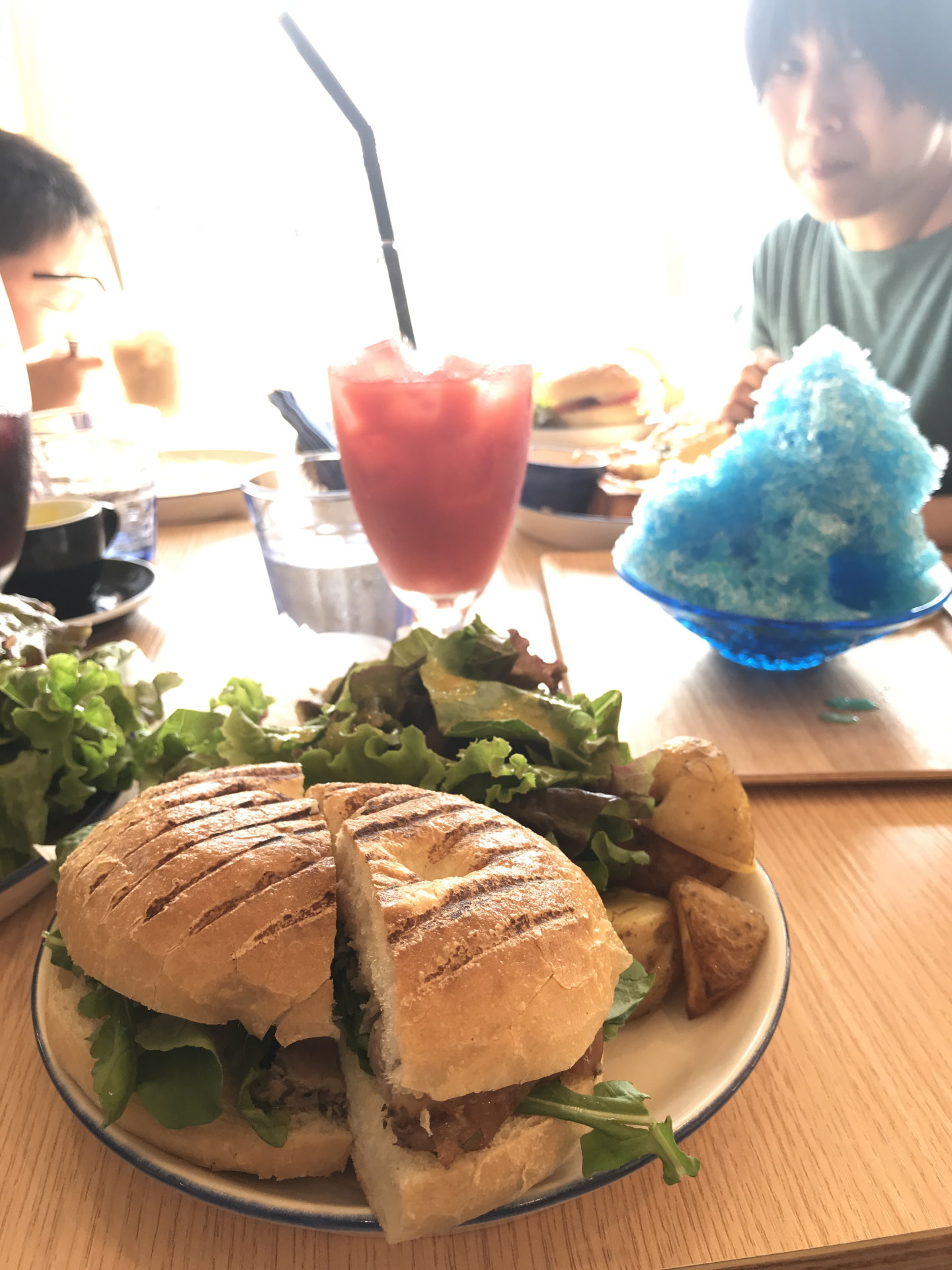 お昼もだいぶ過ぎ、おなかもペコペコということで、三浦海岸西岸を北上するとヨットハーバーのほとりにステキなカフェが。