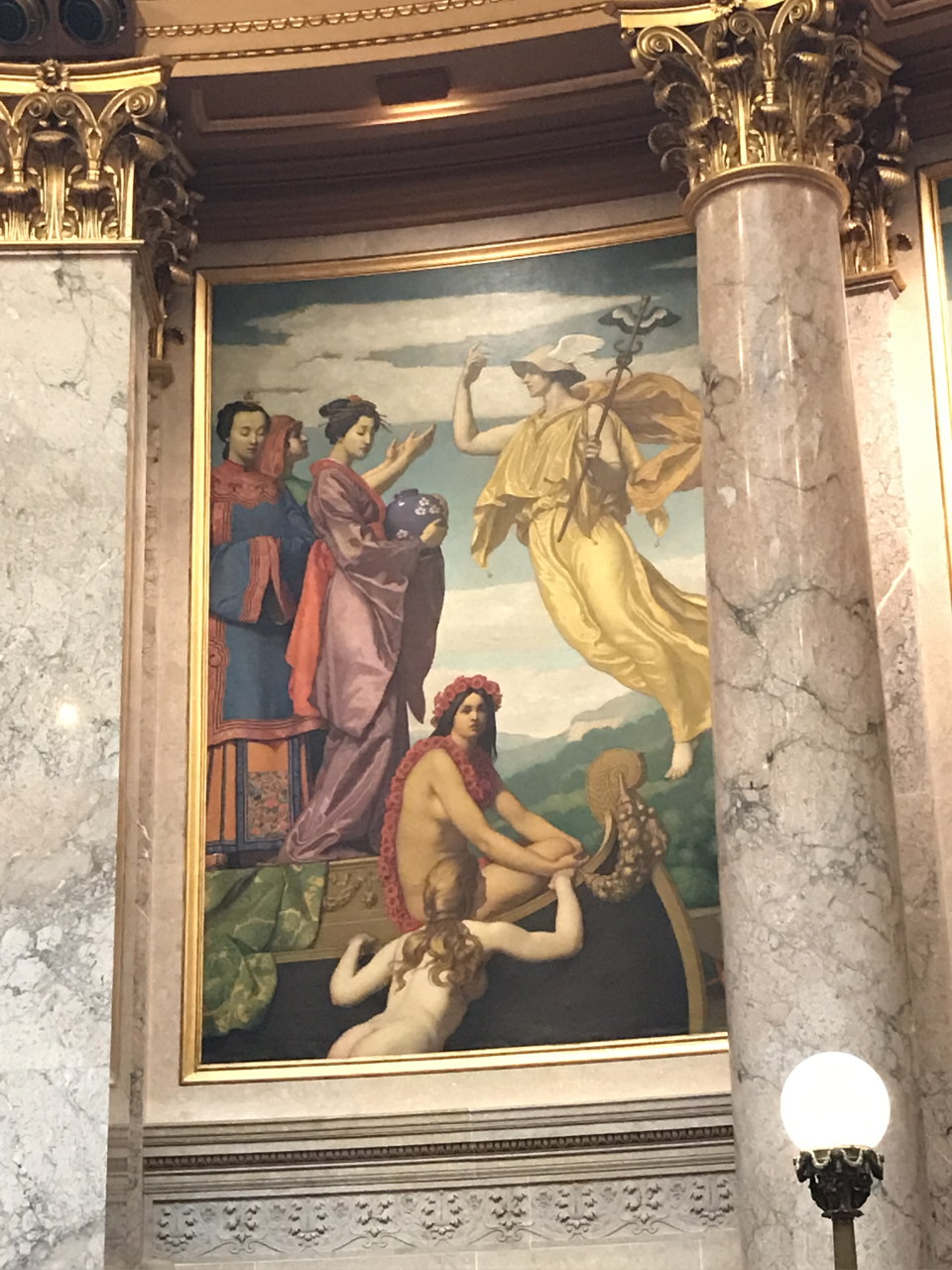壁にはアメリカやウィスコンシンの歴史をシンボリックに描いた壁画などもあり、なんとも歴史の重みを感ずる空間だった。