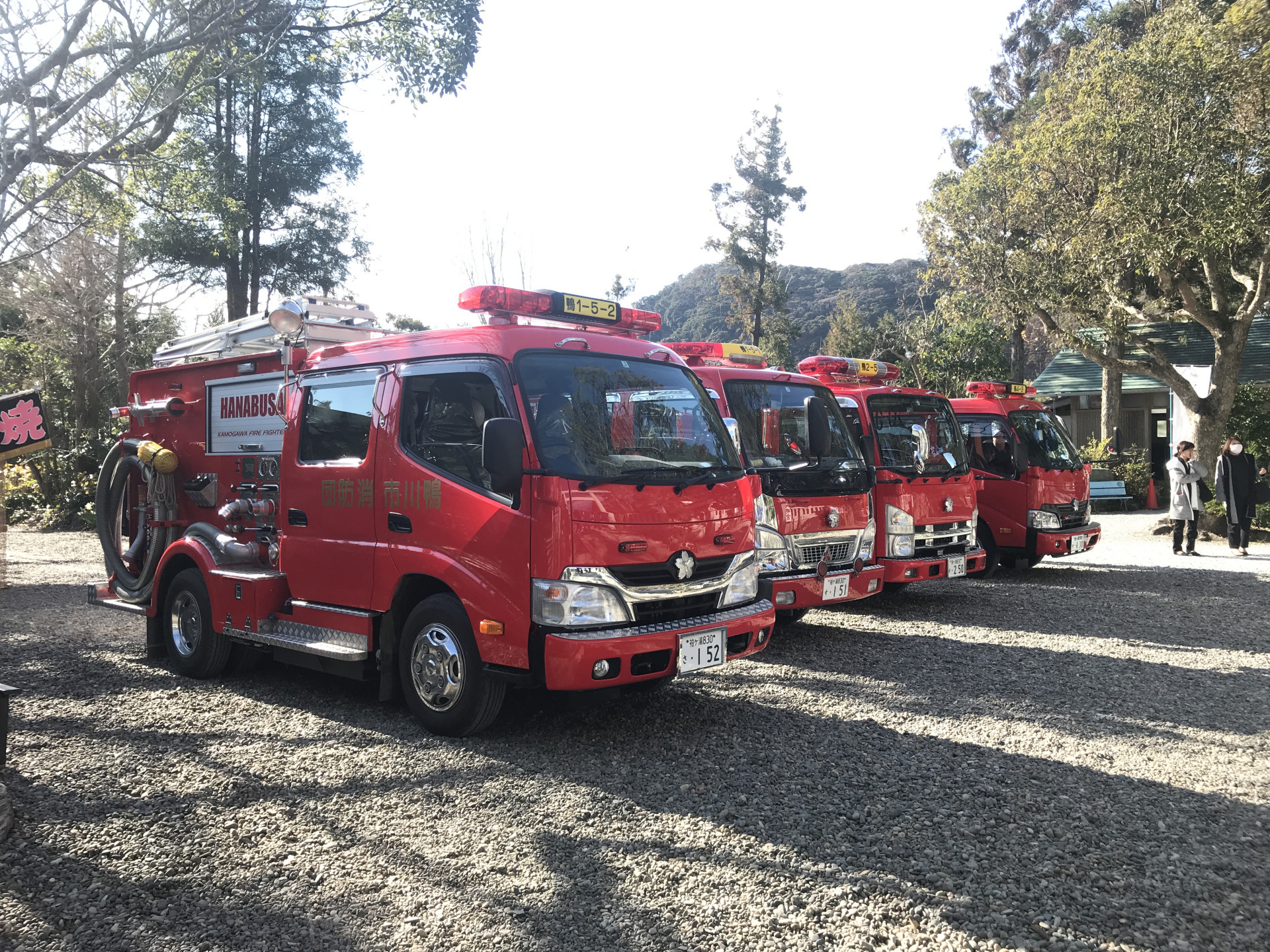 [写真:出初めを終え、お祓いに参った消防団の消防車