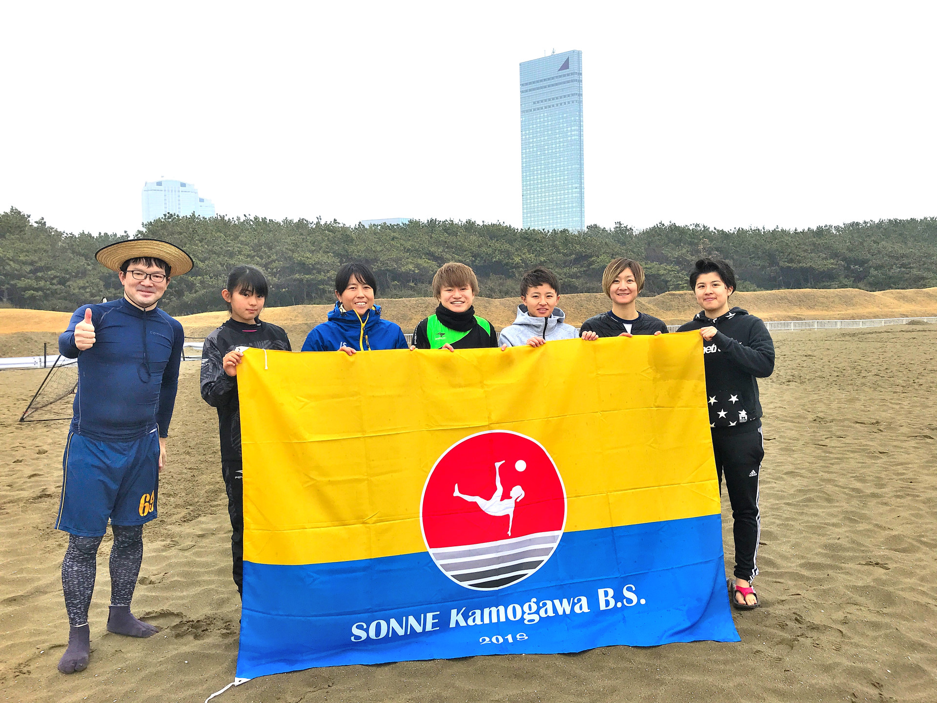 全員参加とは行かなかったが、幕張ビーチにて、朝8時半から地元のボンズ市原ビーチサッカーのみなさんの練習に参加させていただき、チーム練習を行った。