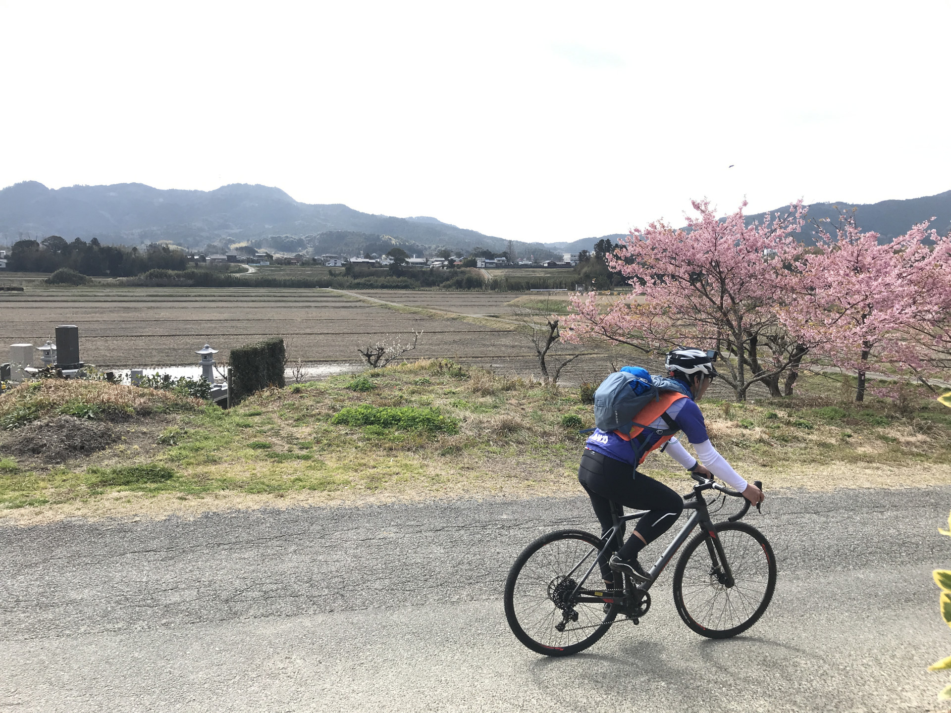 季節はまだ冬だが、房総ではもう春の息吹が感じられ、河津桜、菜の花、水仙が咲く中を気持ち良くサイクリングできる。