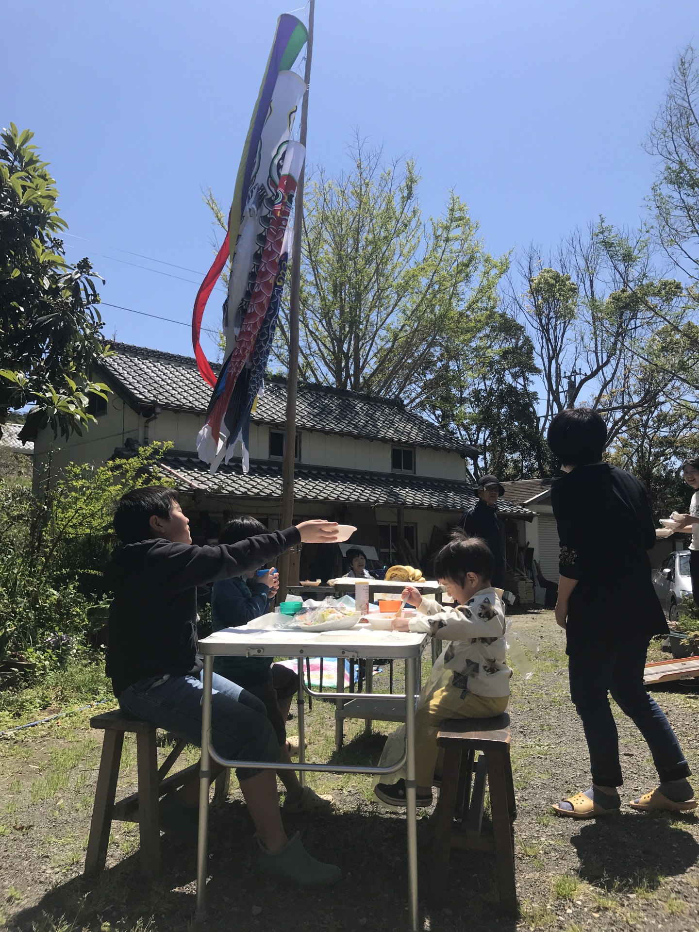お昼は母屋の裏庭で家族そろってのオープンエアでのランチ。