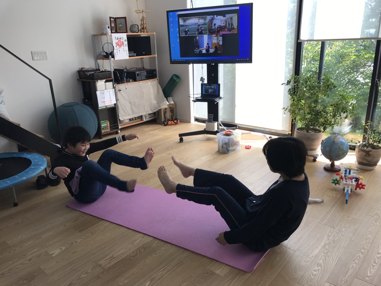 午後は自宅に戻り、ウェルスポのオンライントレーニング親子教室に家族とともに参加した。