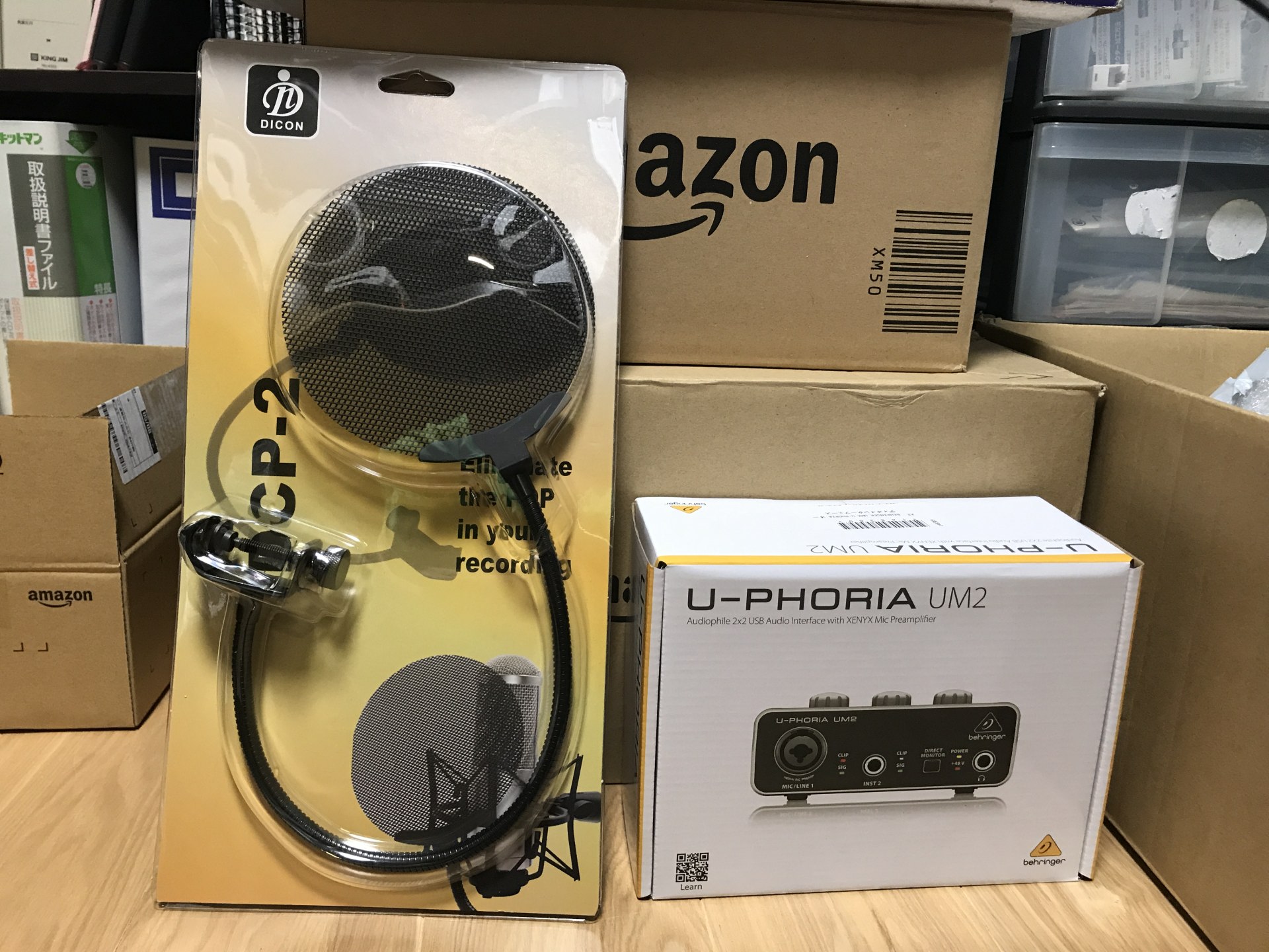 というわけで、全部で15,000円もしない金額で揃えることができ、マイク以外は届いたので、とりあえず手持ちのダイナミックマイクを使用して接続して収録してみた。